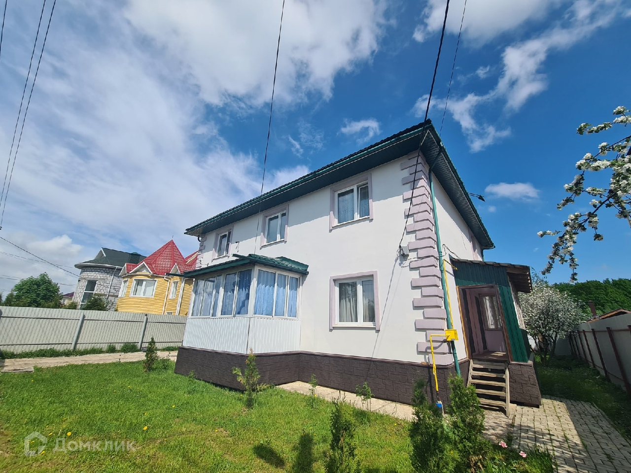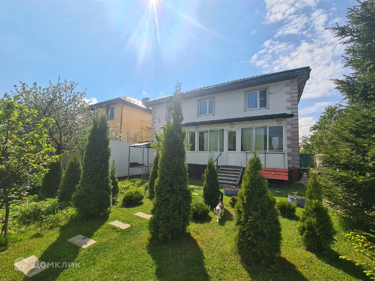 Есть автоматические ворота, видеонаблюдение, площадка бетонированная для стоянки нескольких машин, оборудована беседка, парник. На участке расположен второй домик- щитовой с мансардой для гостей.