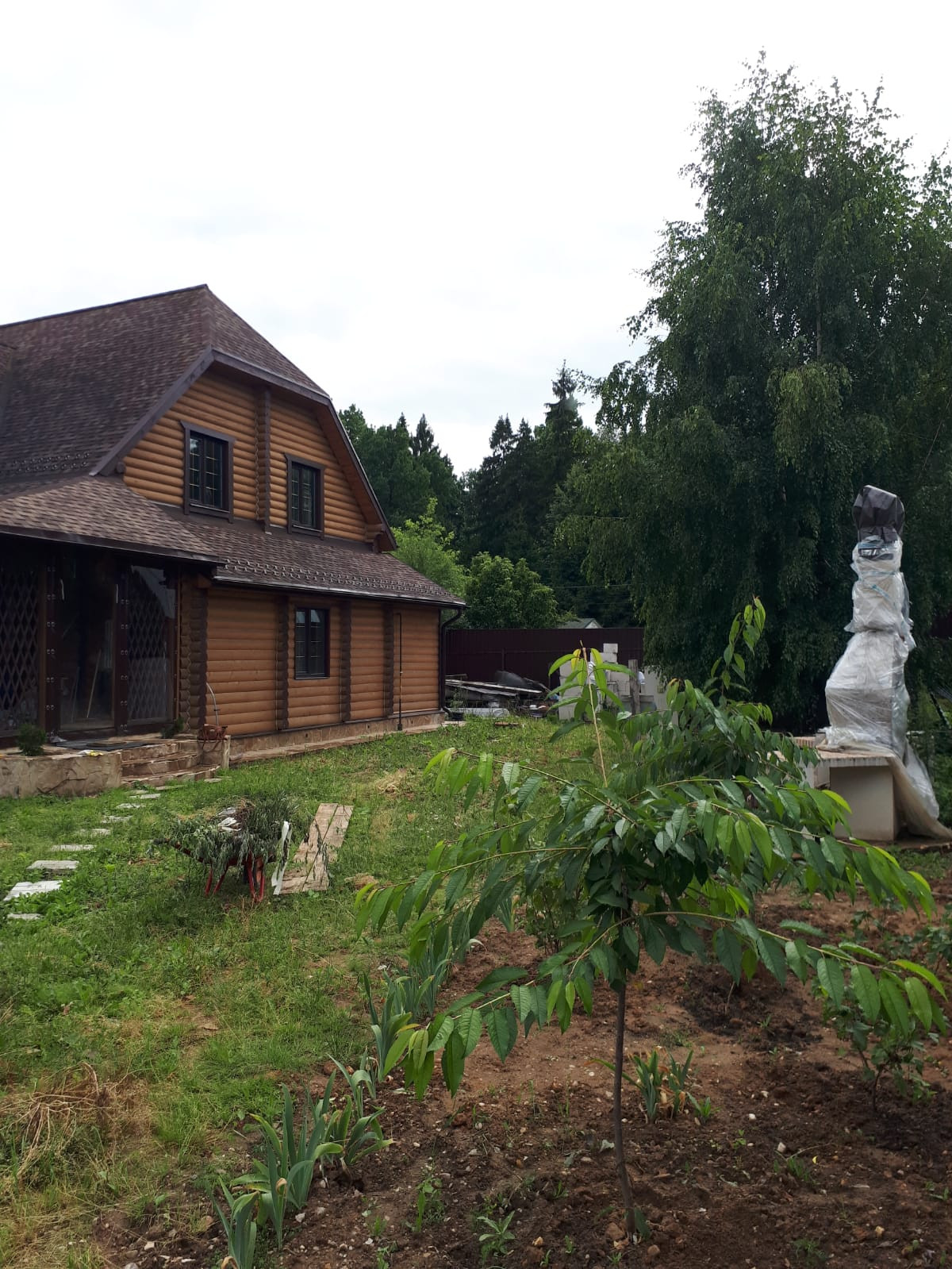 На участке растут плодовые деревья, выполнены работы по организации небольшого пруда для Альпийской горки.