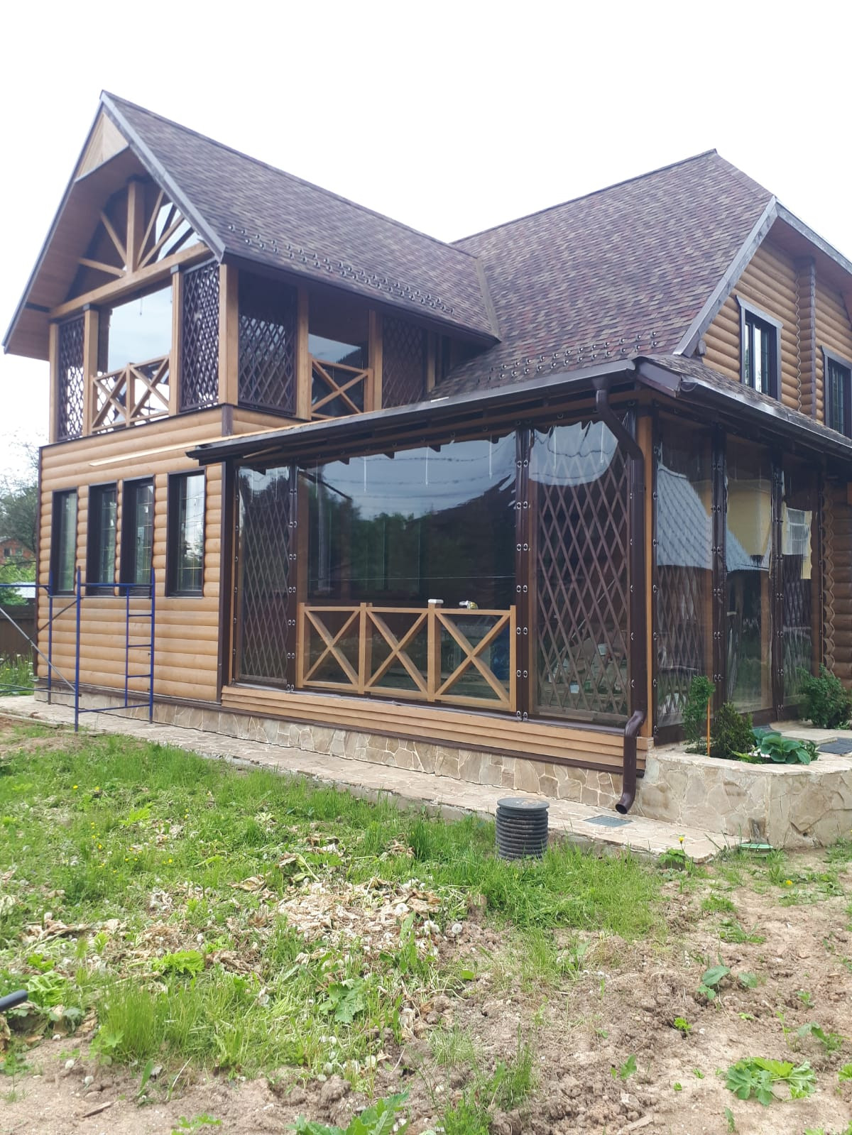 Веранда оборудования гибкими окнами, во избежание попадания осадков.