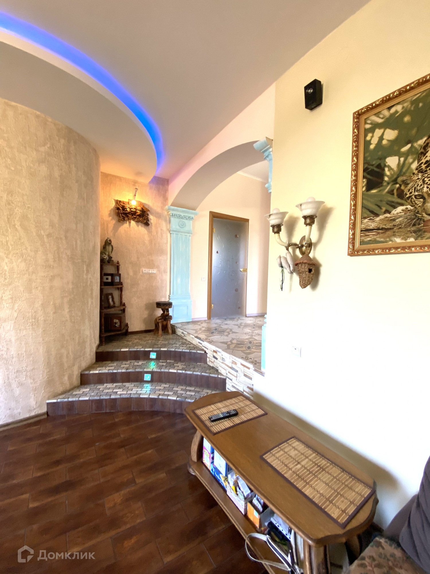 В доме на 1 этаже расположено: кухня, переходящая в гостиную с действующим камином, также есть отдельный выход на улицу, просторная спальня, душевая комната, постирочная, проведены теплые водяные полы; на 2 этаже: комната под зимний сад, две спальни с выходом на балкон, кабинет, вместительная кладовая, детская комната, ванная комната; на мансардном этаже большое пространство, которое можно использовать под комнату для отдыха; на цокольном этаже: домашний кинотеатр, тренажерный зал, санузел, кладовая и котельная. Общая площадь с мансардным этажом 400 квм.