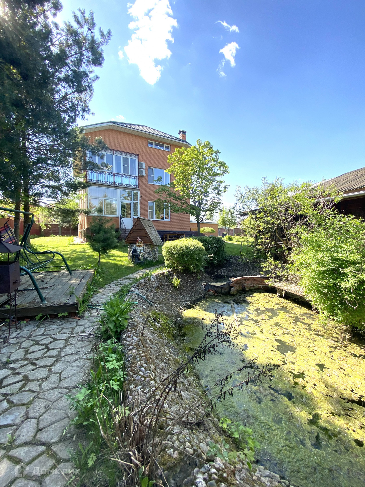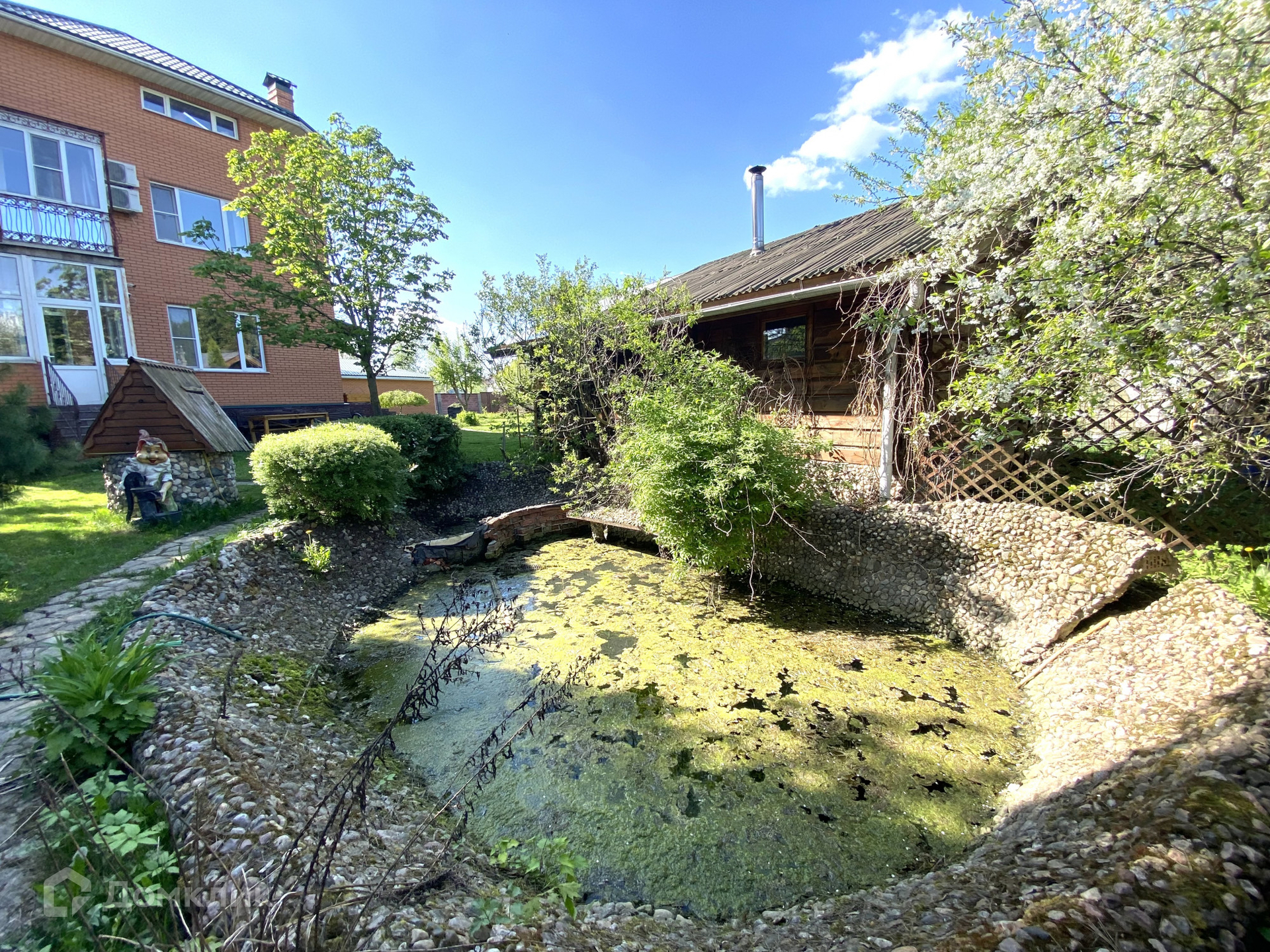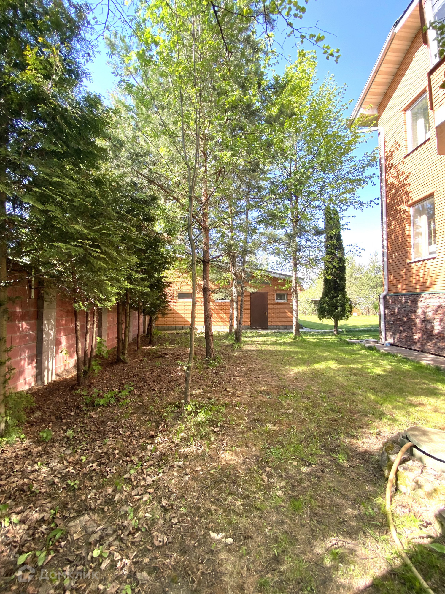 Участок на 12 соток, огорожен забором. Есть гараж на два автомобиля. Во дворе имеется парная баня с комнатой отдыха, душе, также есть теплица для посадки урожая, крытая беседка с зоной барбекю и рядом свой небольшой пруд. На территории посажены декоративные деревья и кустарники.