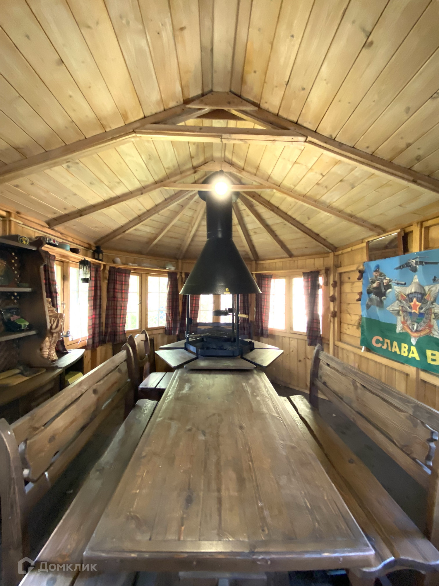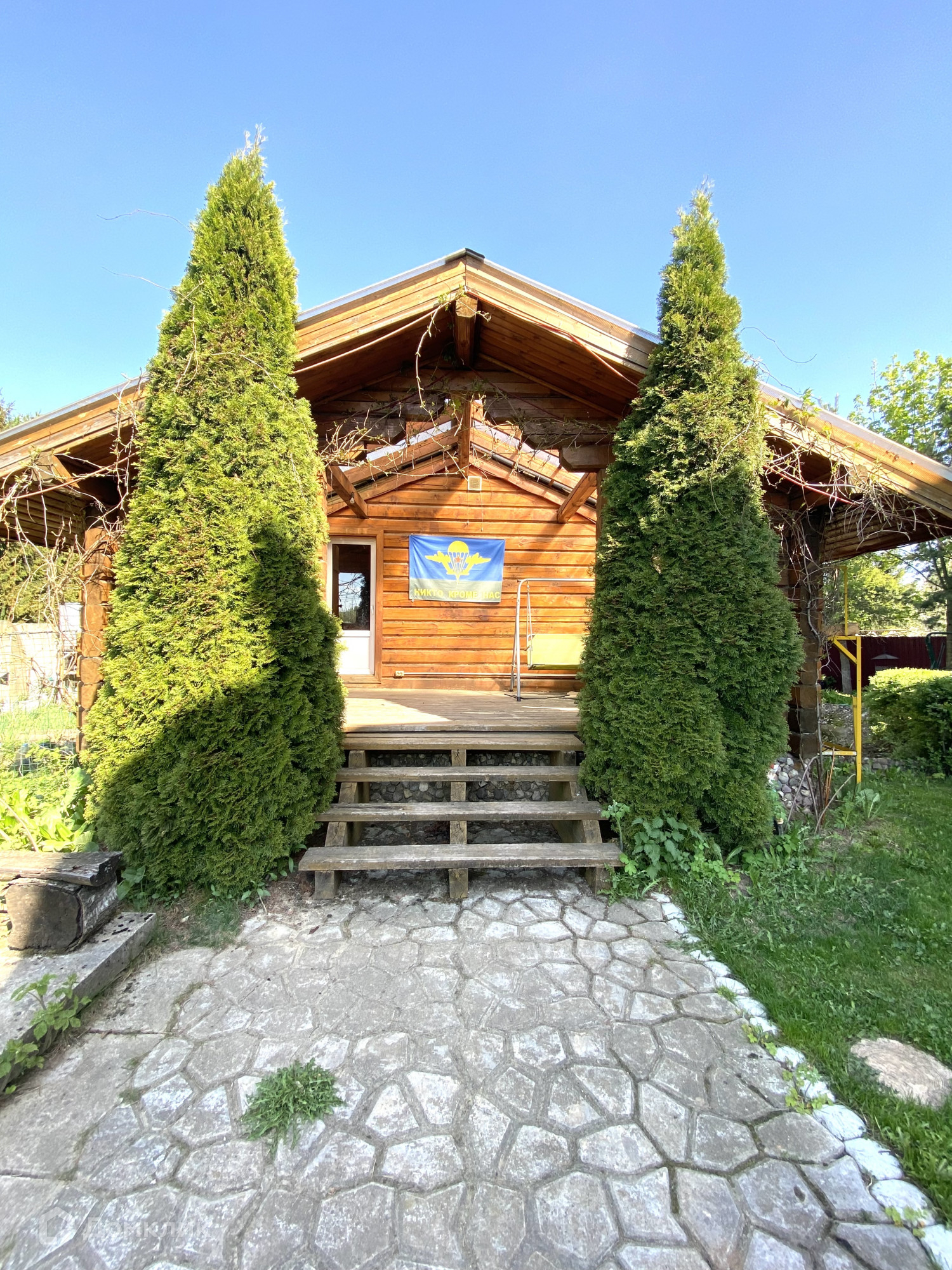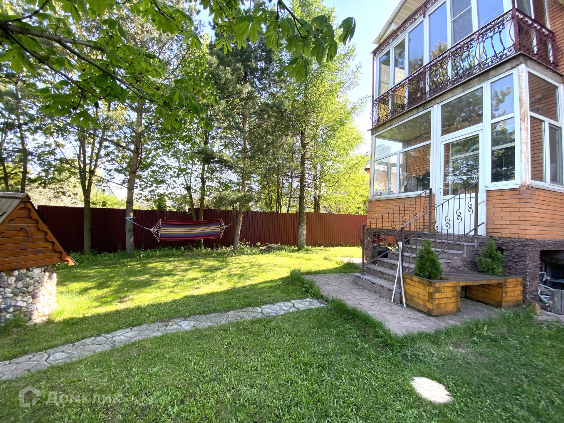 Участок на 12 соток, огорожен забором. Есть гараж на два автомобиля. Во дворе имеется парная баня с комнатой отдыха, душе, также есть теплица для посадки урожая, крытая беседка с зоной барбекю и рядом свой небольшой пруд. На территории посажены декоративные деревья и кустарники.