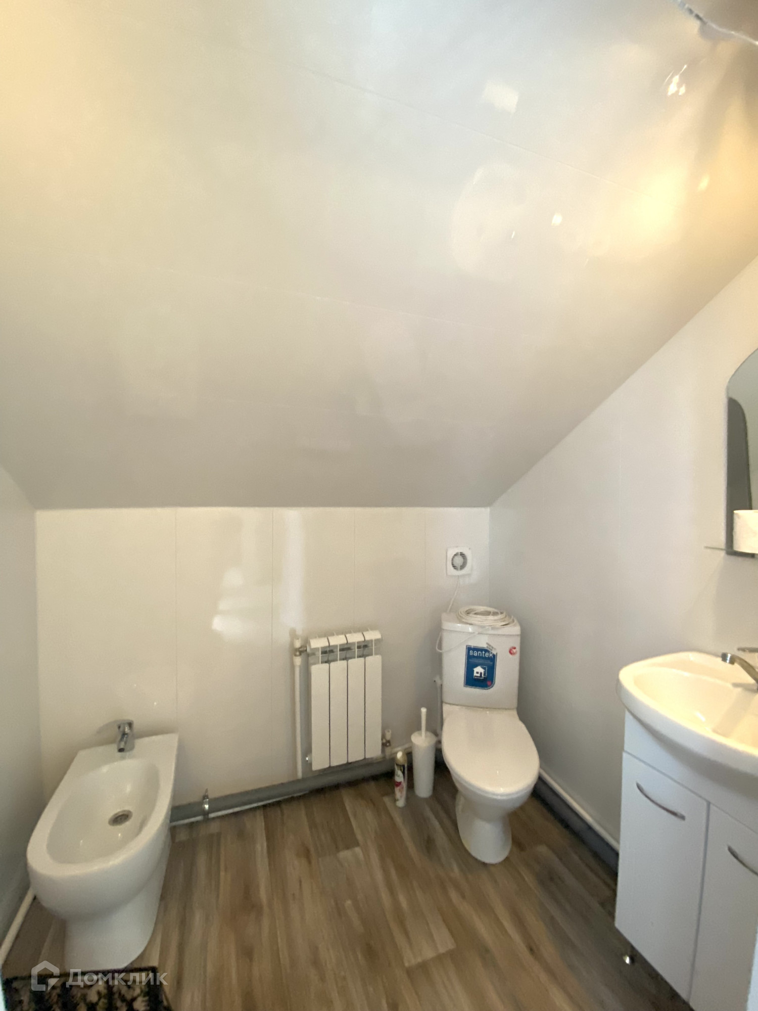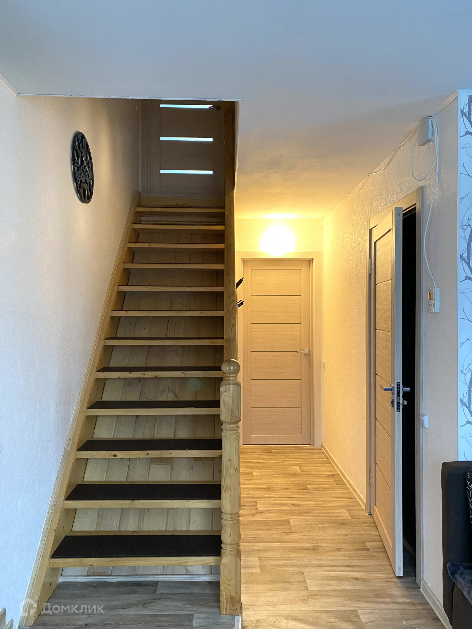В доме удобная планировка, на 1 этаже расположено: кухня, преходящая в гостиную, просторная спальня, ванная комната, вместительная кладовая для хранения вещей; на 2 этаже: три большие и светлые комнаты, выход на балкон, санузел. Дом построен из газобетона, на первом этаже проведены тёплые полы.