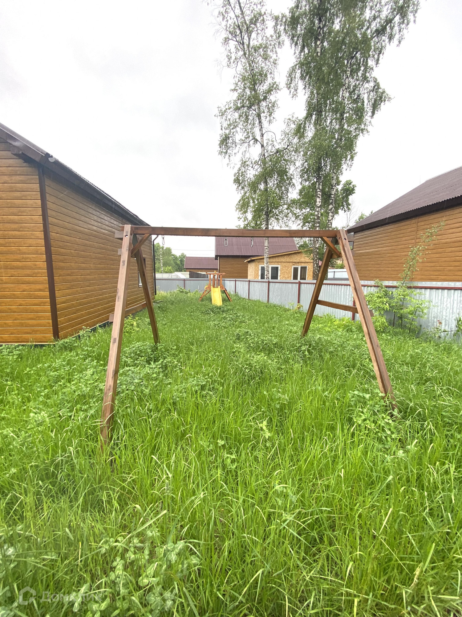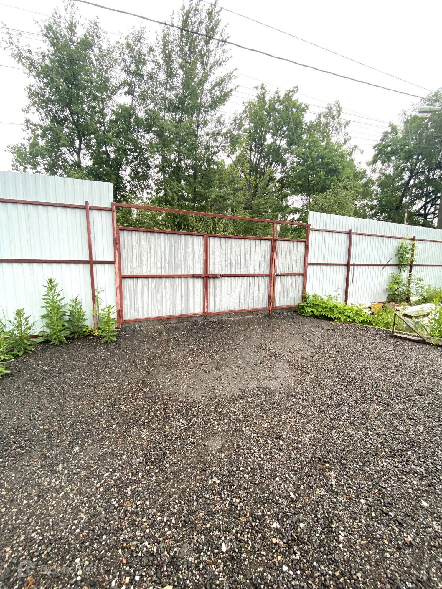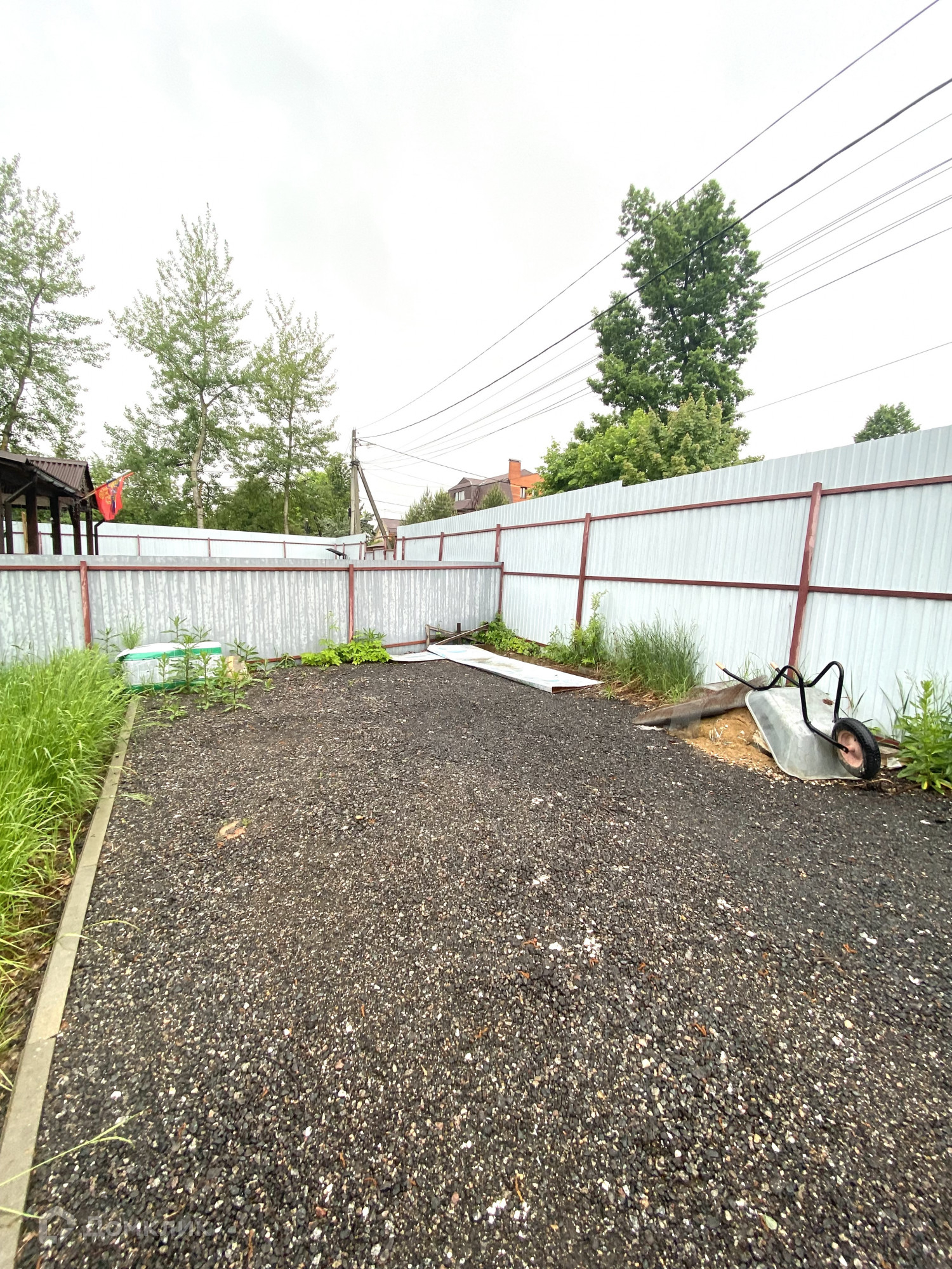 Участок на 5 соток, огорожен забором. На участке есть парковочное место на 1 автомобиль. Посажены молодые вишни, яблоня (сорт гольден), растут несколько кустов малины, шиповник, смородина, ежевика.