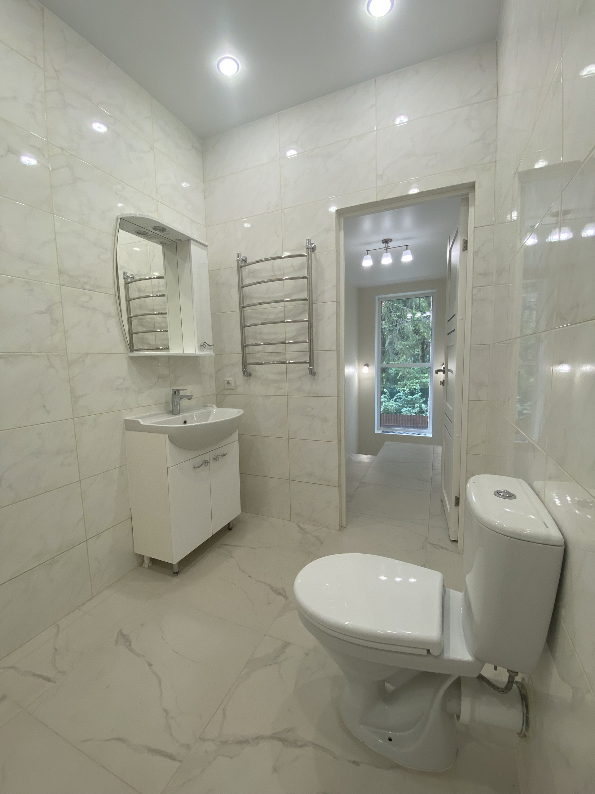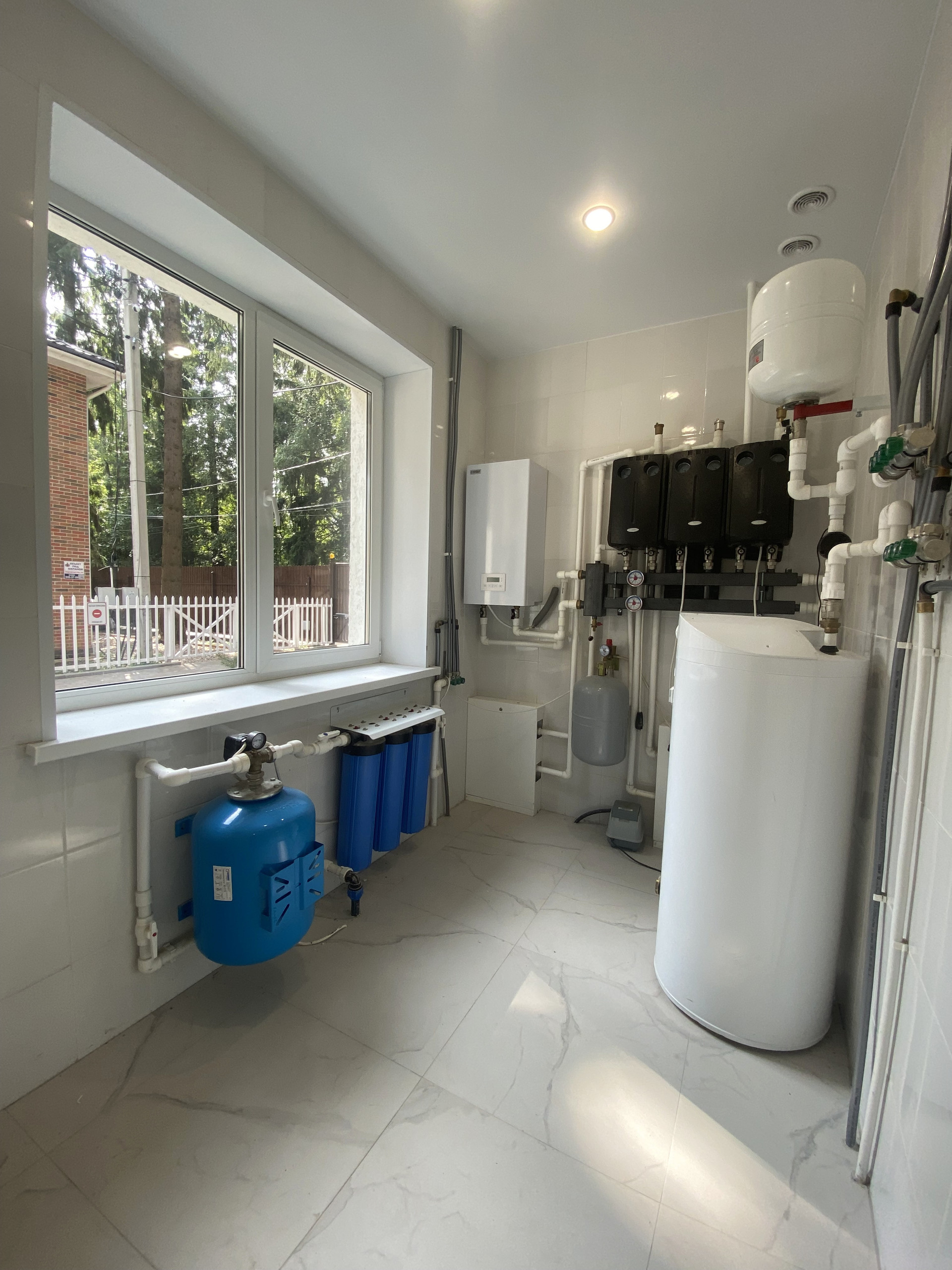 Отделка выполнена с использованием премиум-класса материалов, на первом этаже теплый водяной пол, установлен внутрипольный конвектор, укомплектованная оборудованием бойлерная. На втором этаже установлены радиаторы отопления, теплый пол в Санузлах.