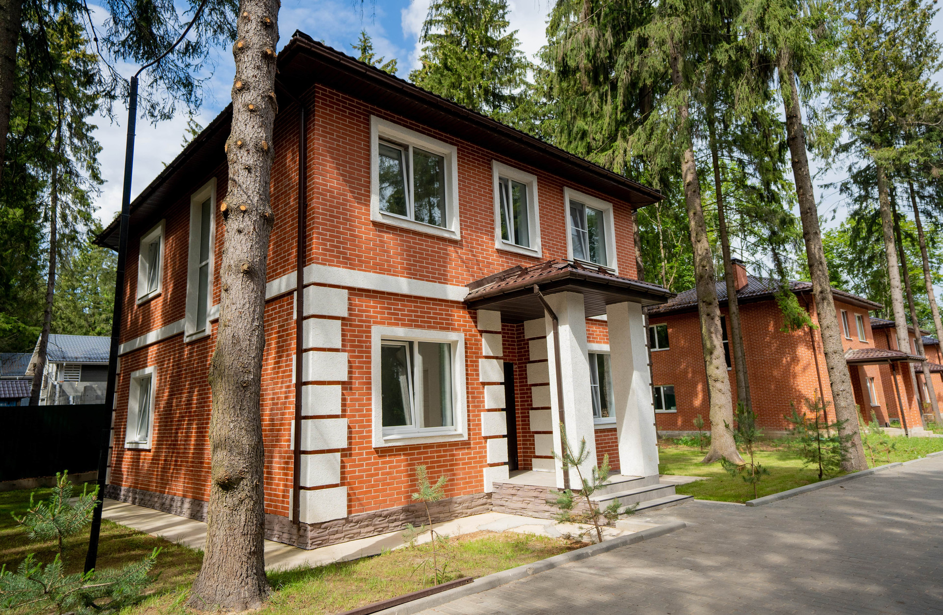 Продается кирпичный коттедж в европейском стиле на участке 4,5 сотки в окружении хвойного леса с вековыми деревьями.