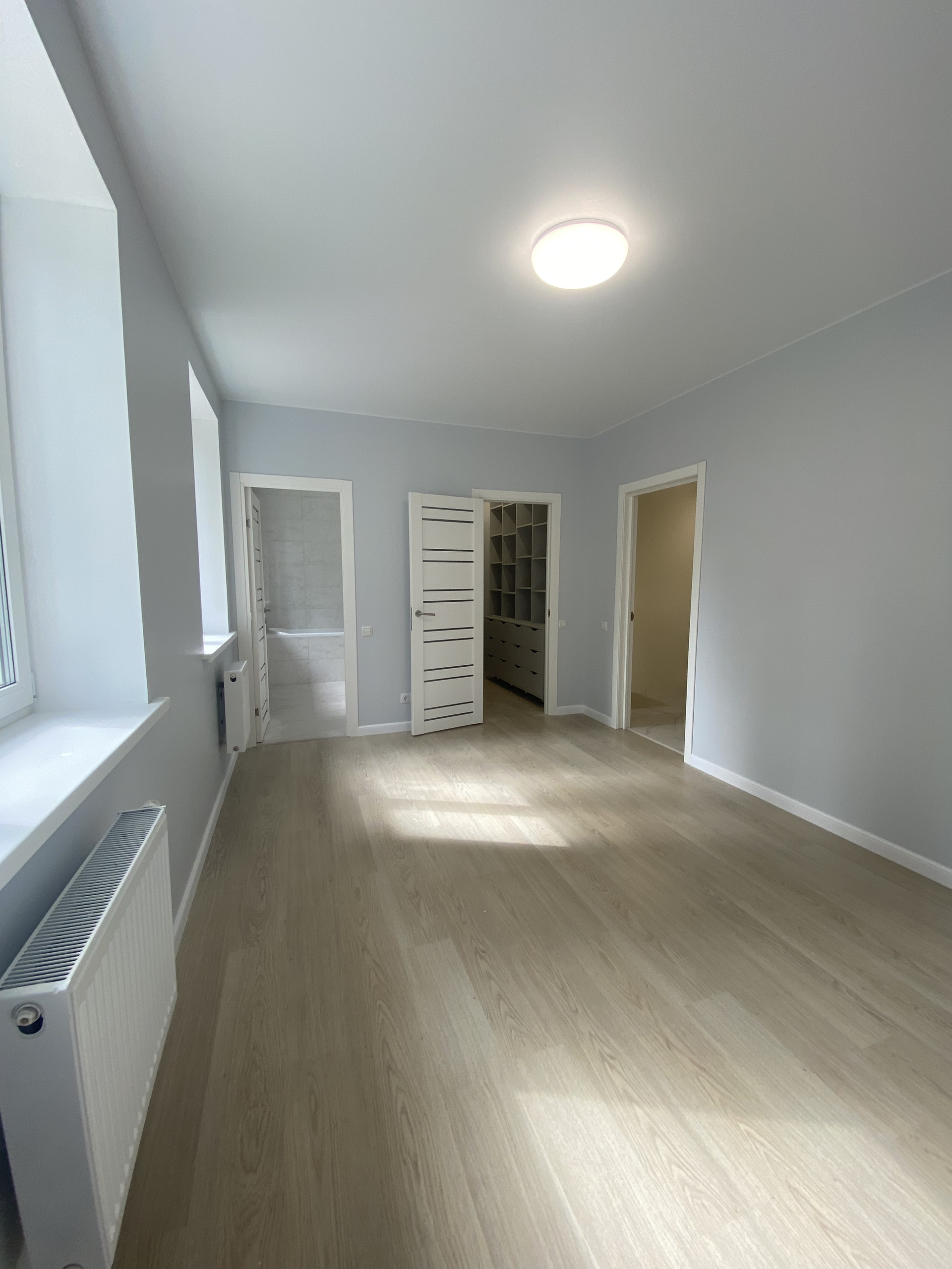 - Встроенная мебель: кухонный гарнитур, две гардеробные комнаты.