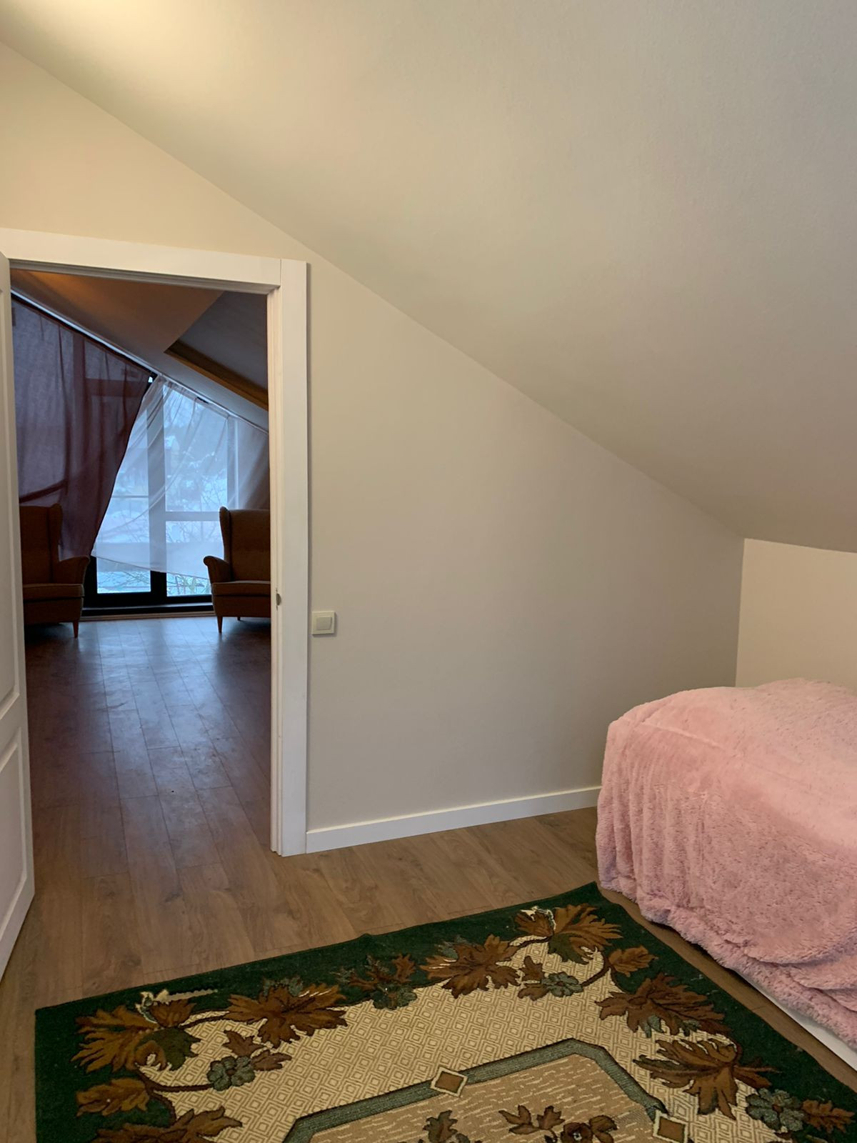 На вором этаже (мансардный) 3 спальни, 2 из которых с отдельными с/у, лестничная площадка с уютной зоной отдыха.