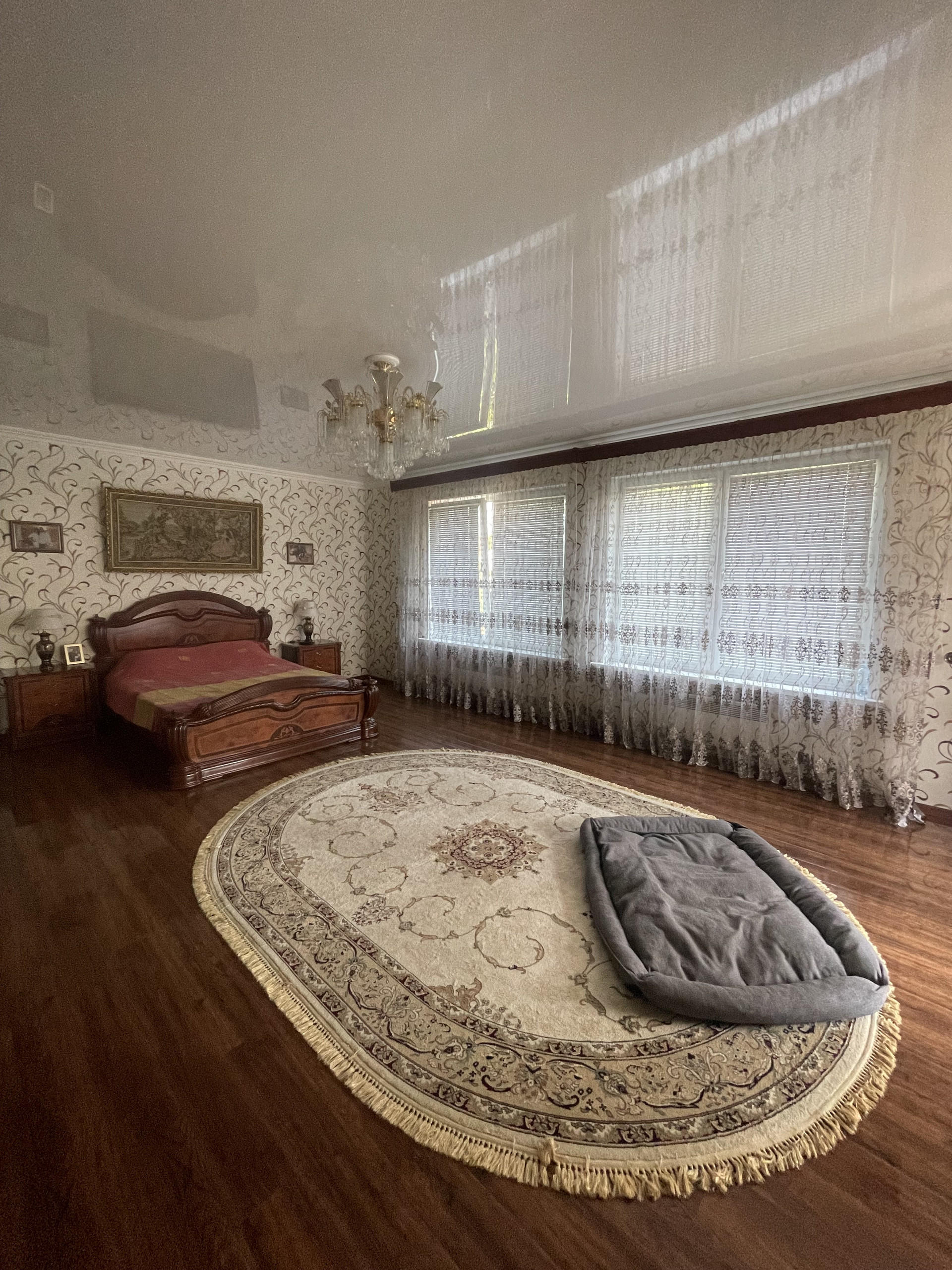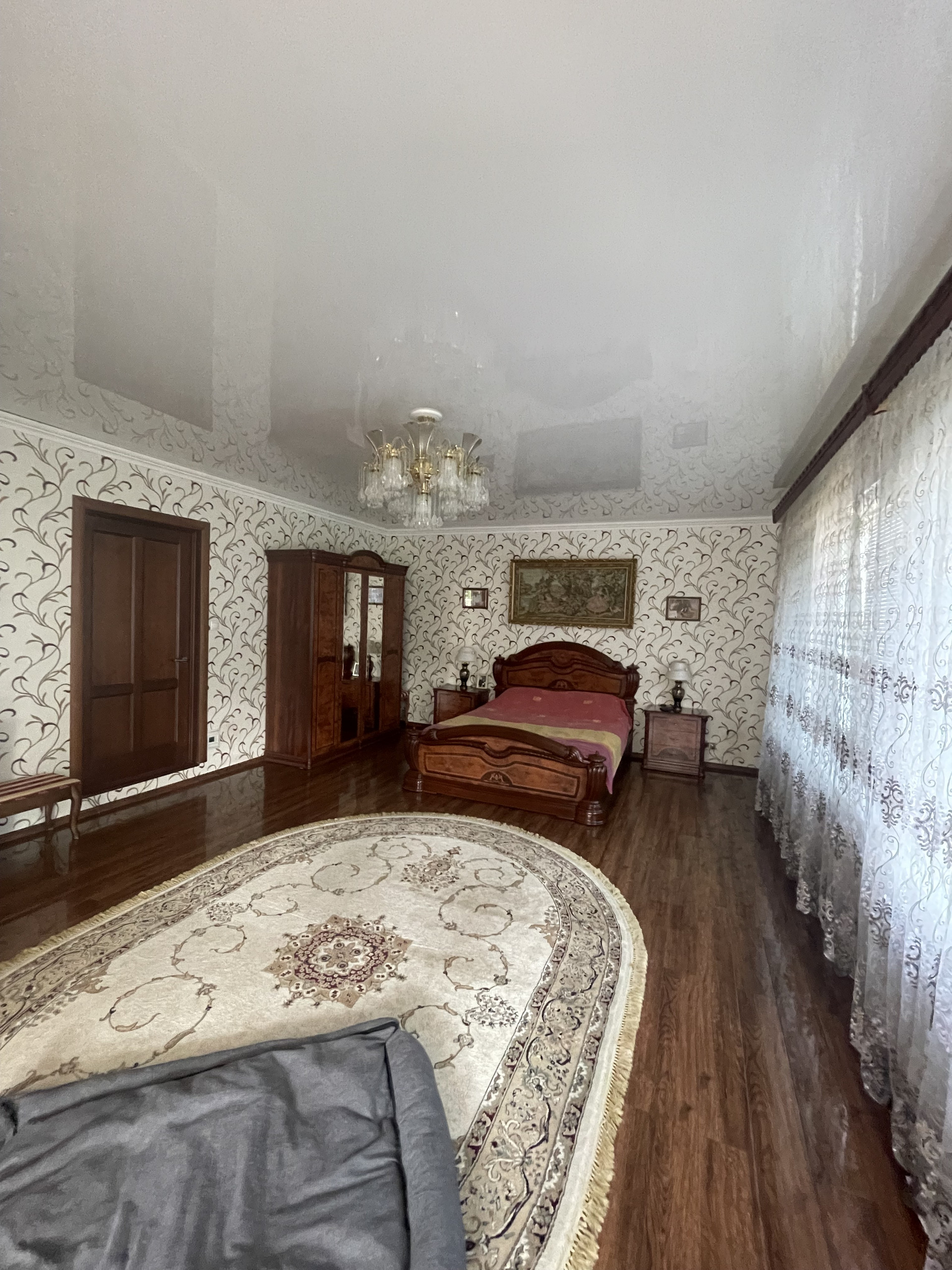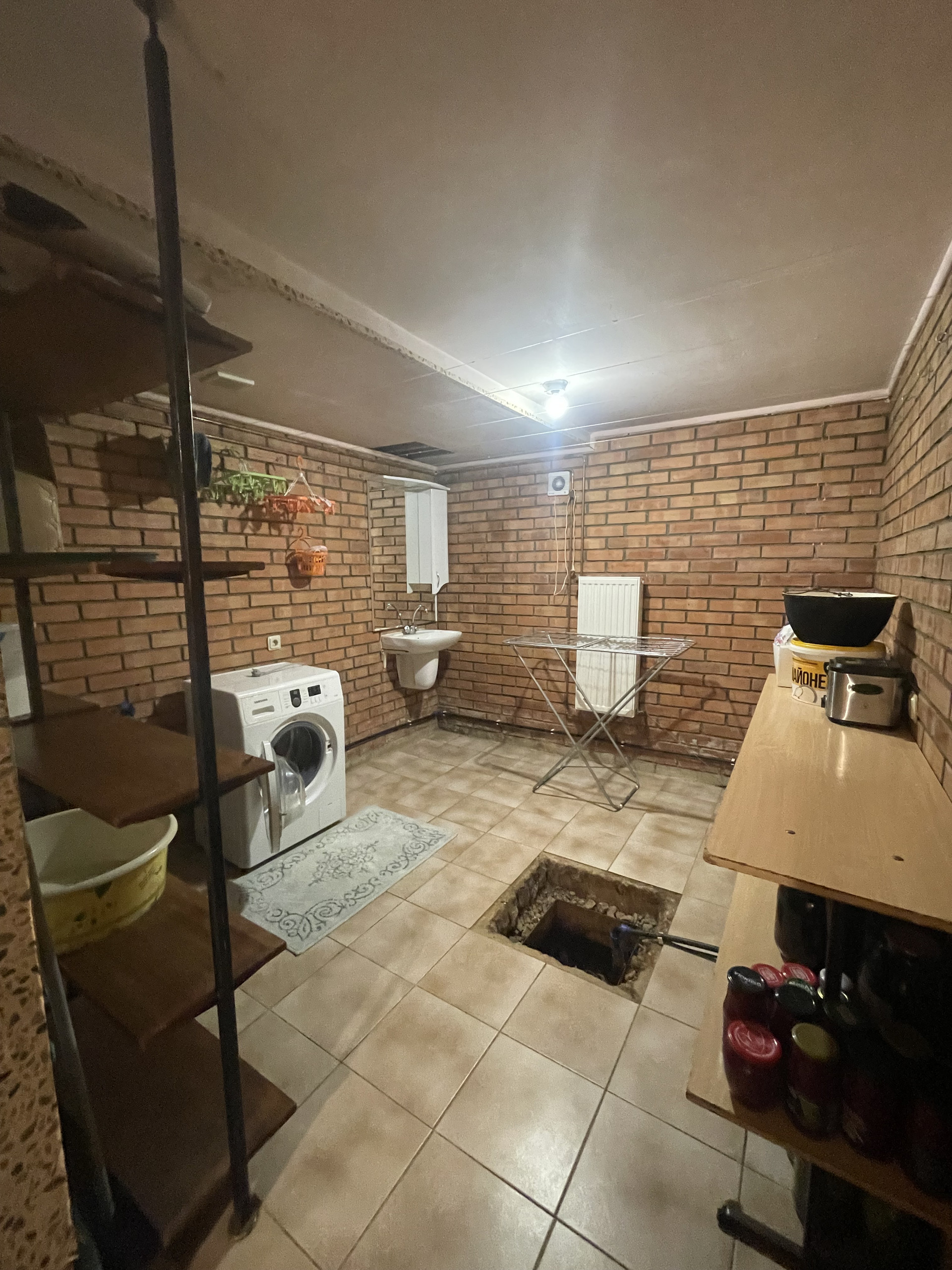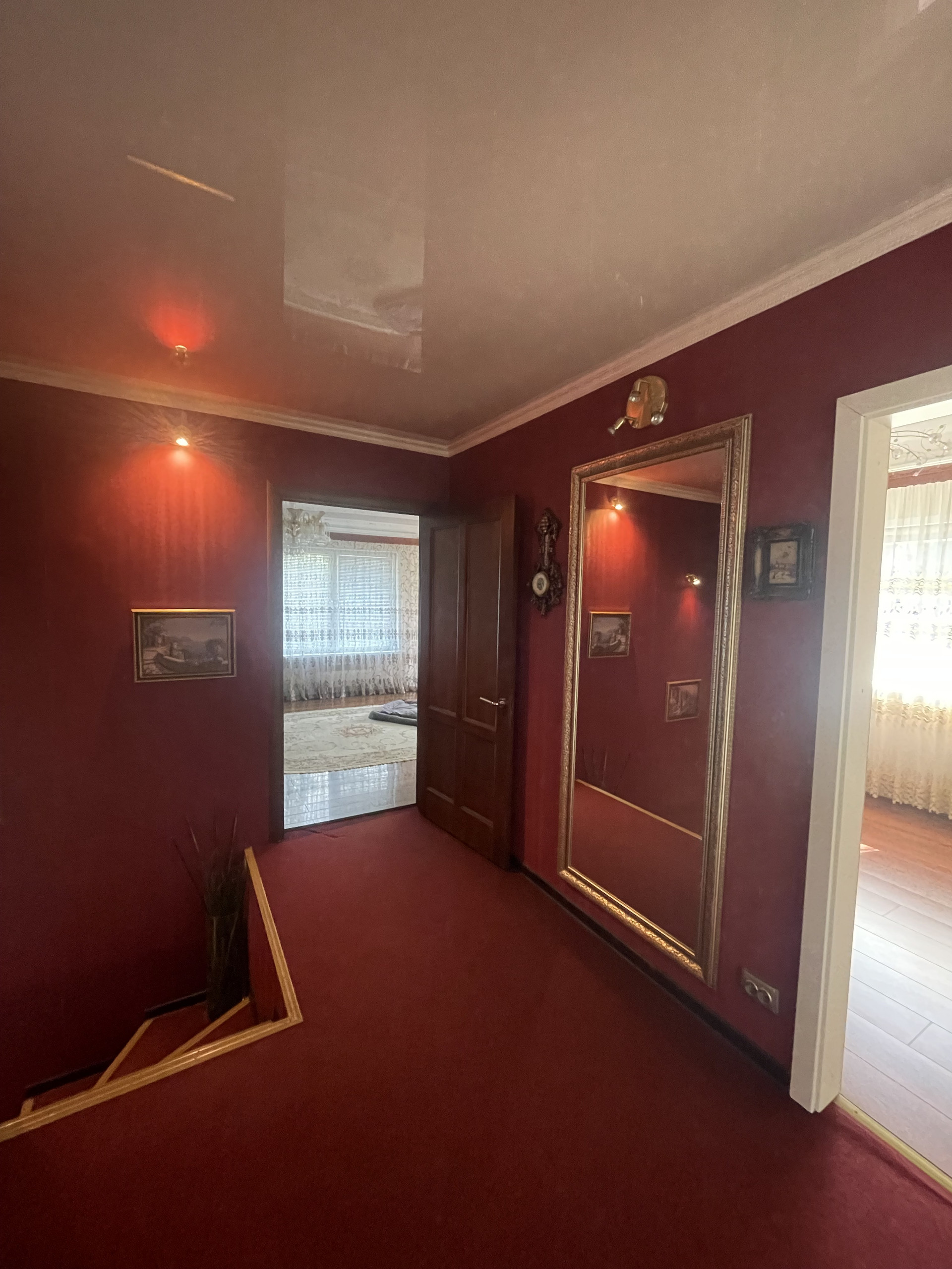 Планировка: на 1 этаже расположены просторная кухня/столовая, большая гостинная, санузел, коридор, терраса. На 2 этаже четыре спальни, санузел, лоджия. На цокольном этаже бойлерная, огромное подсобное помещение с стиральной машинкой и местом для сушки белья. Два больших гаража, один из которых отдельно стоящий от дома.