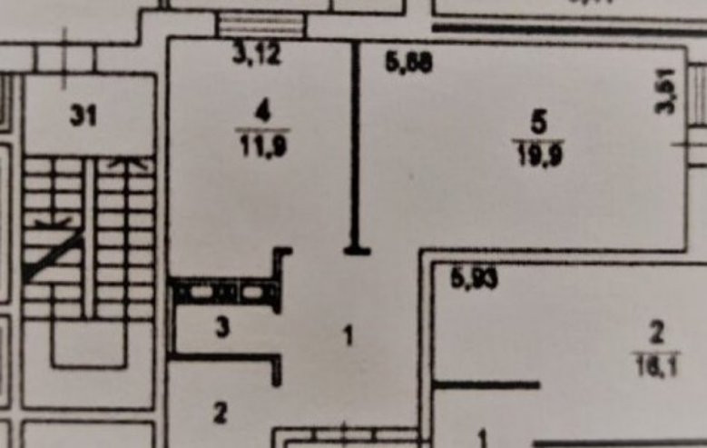 Жилая площадь 19.9 м2
