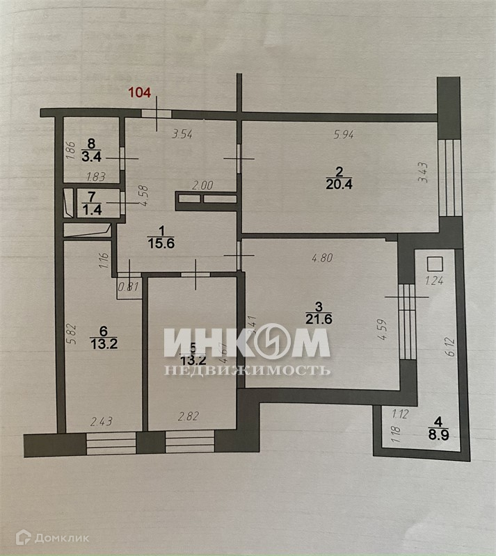 Жилая площадь 55.2 м2