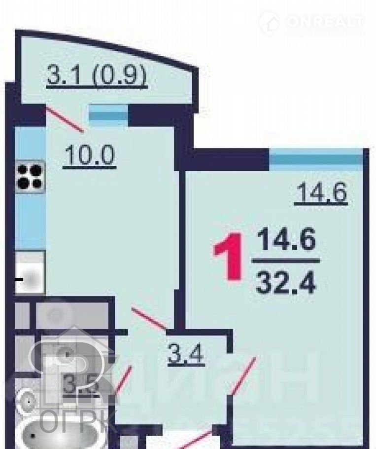 Общая площадь 32 м2