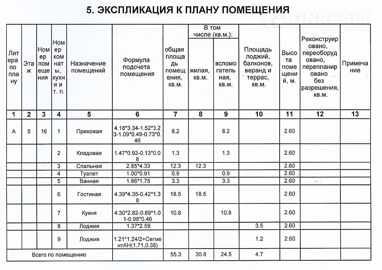 Общая площадь 55.3 м2
