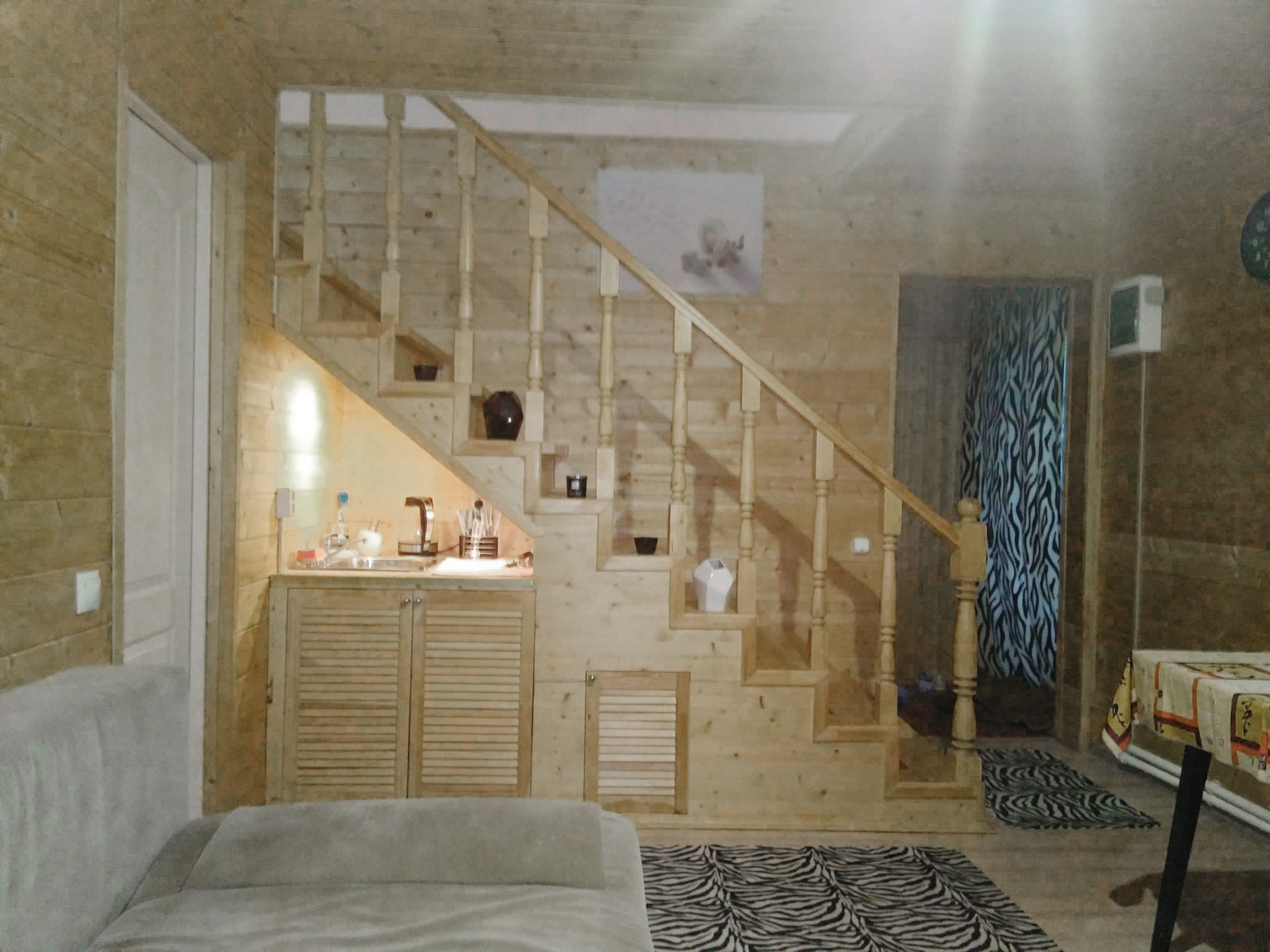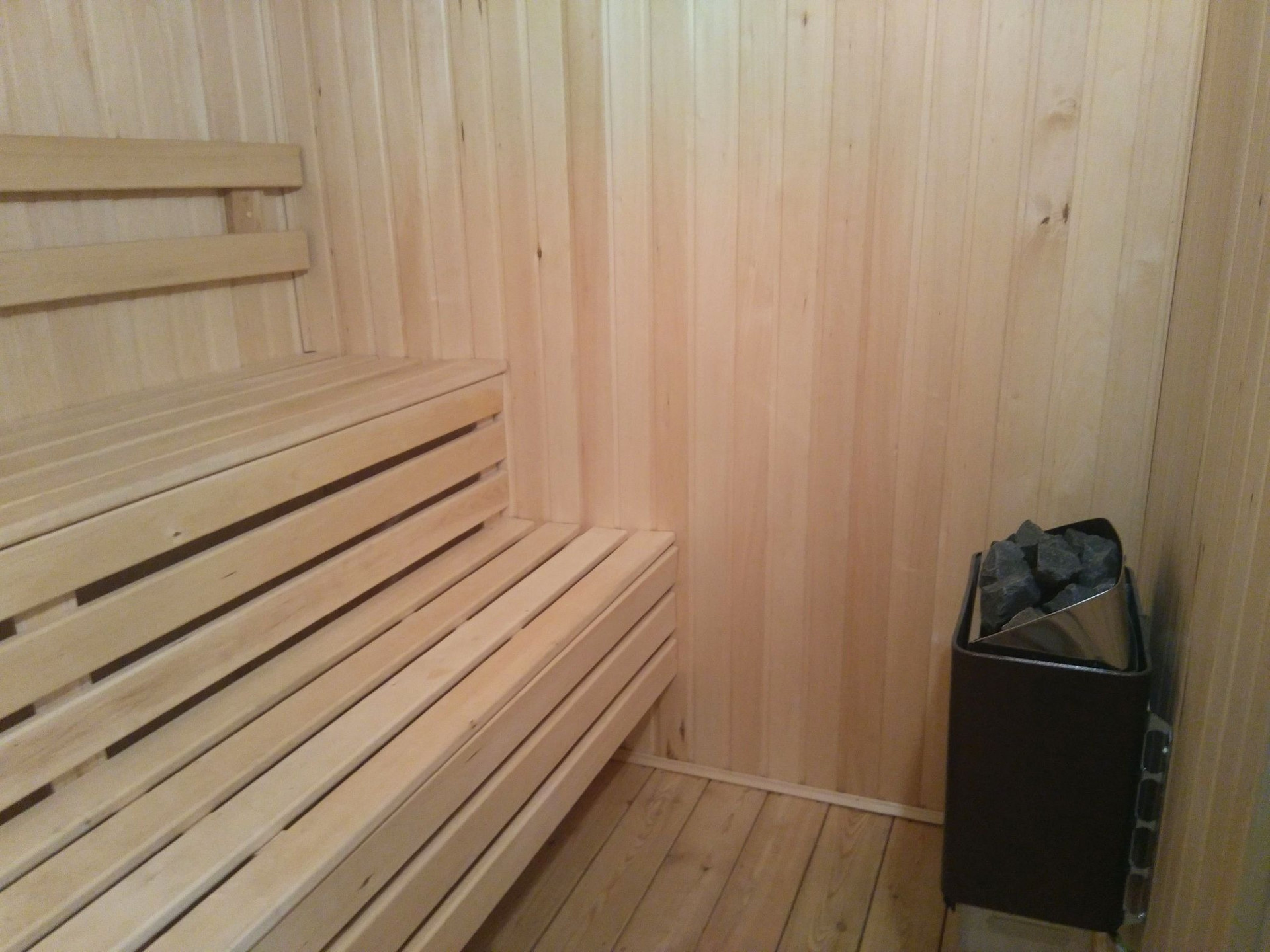 1й этаж: гостиная, кухня, ванная комната, сауна (электрическая);