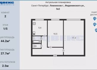 Продается 2-комнатная квартира, 44.2 м2, Ораниенбаумский проспект, 49