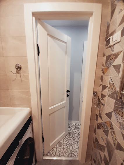 2. Все внутренние легкие ненесущие перегородки заменены на ПГП (гипсоблок) или каркасные гипсокартонные конструкции, окрашены акриловой вододисперсионной текстурной краской ALPINA - моющаяся, перекрашиваемая, антивандальная :)