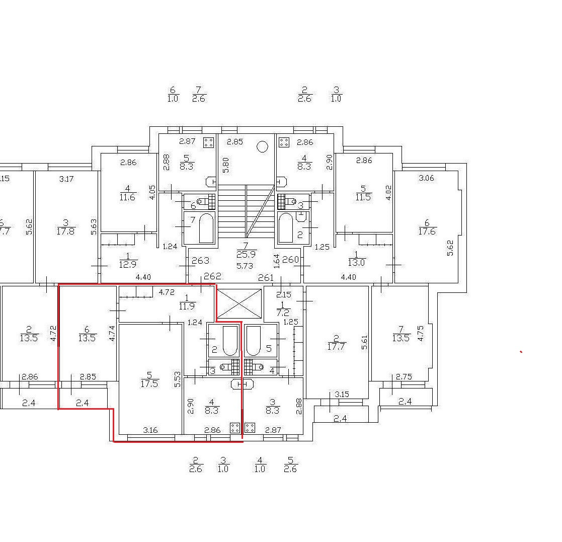 Высота потолков 2.57 м