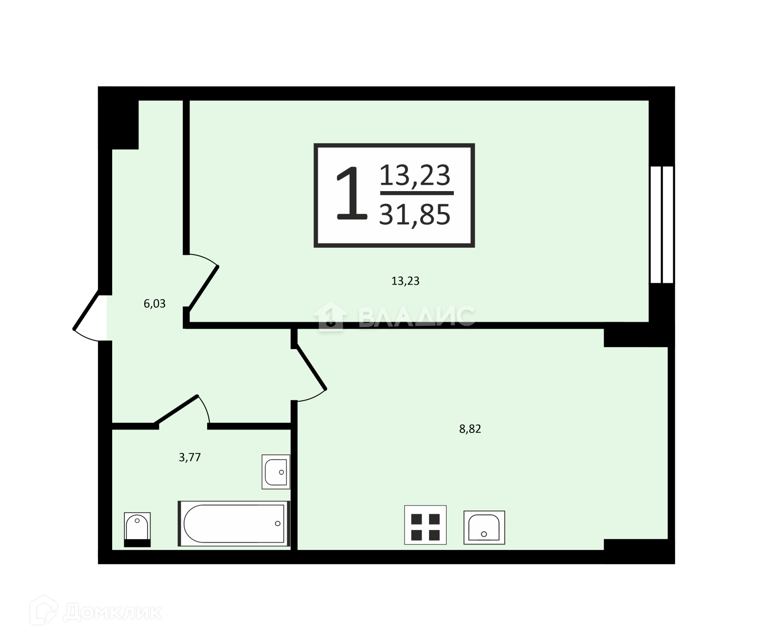 Общая площадь 31.85 м2
