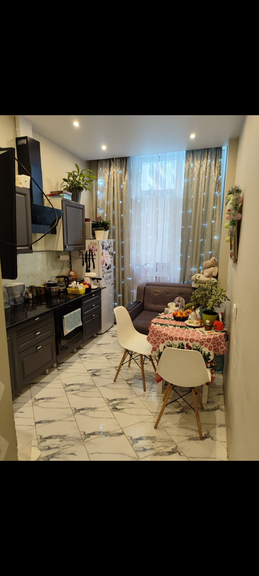 Однушка с ремонтом в первом эпате ( корпусе), теплая, высокий потолок 3.3 метра, вся мебель кухни, шкафы всё оставляем, готовая квартира для жизни прямо сейчас, бойлер, сантехника вся свежая, (трубы, краны и пр), мойка из камня, мраморные подоконники, гардеробные встроенные с дверьми купе в пол, натяжные потолки везде, огромные окна на солнечную сторону во двор, под окном разбит цветник, везде видеонаблюдение.