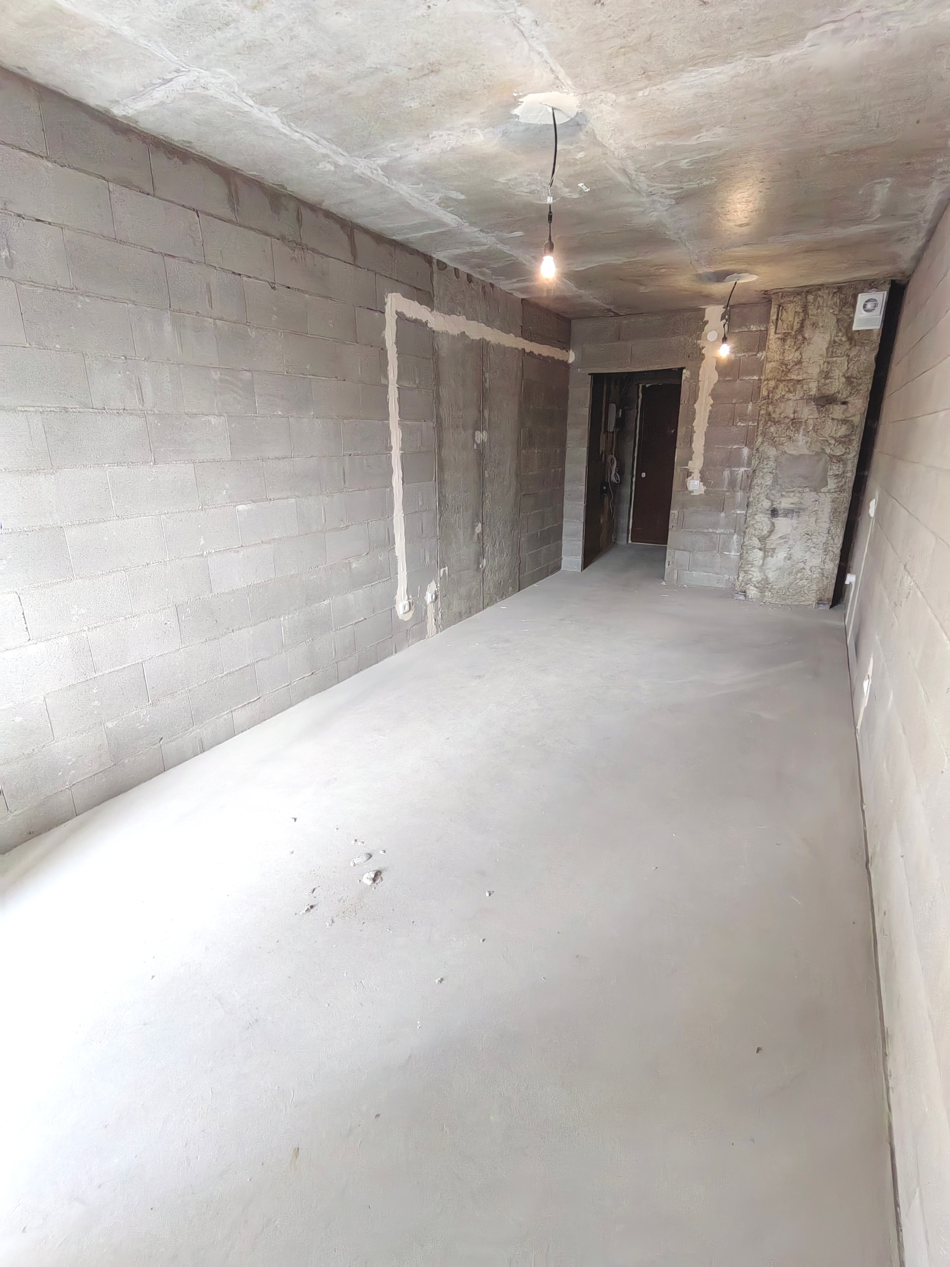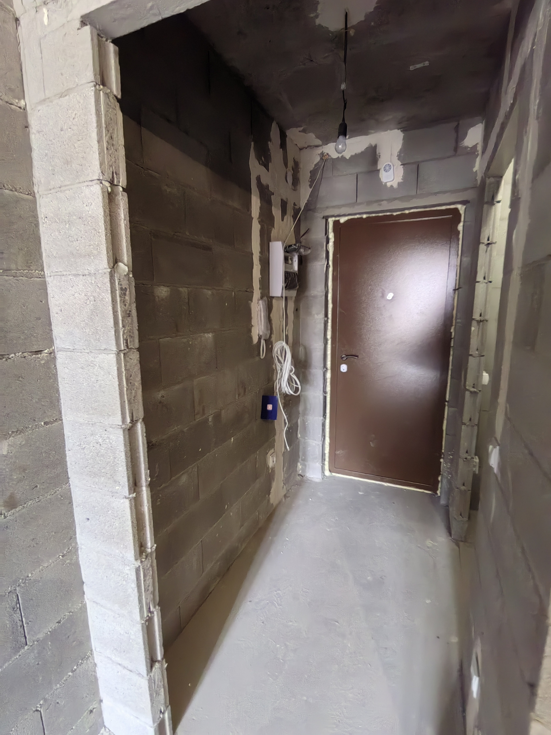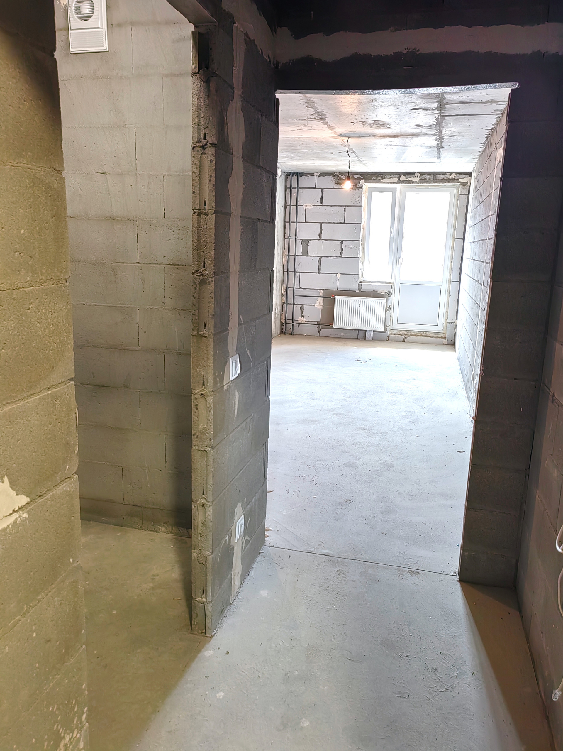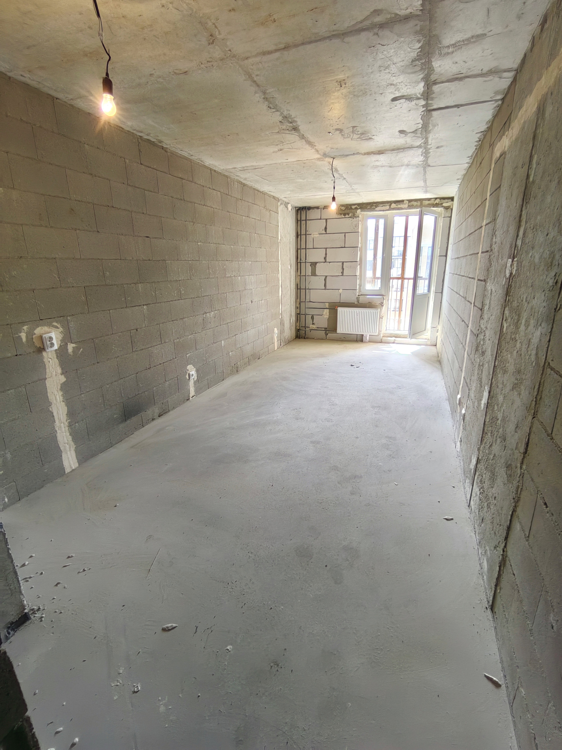 Квартира в черновой отделке, произведено разведение электропроводки с установкой розеток и выключателей, застекленный балкон с панорамным остеклением (только на 8 и 9 этажах), установлен радиатор отопления, счетчики потребления электричества и воды.