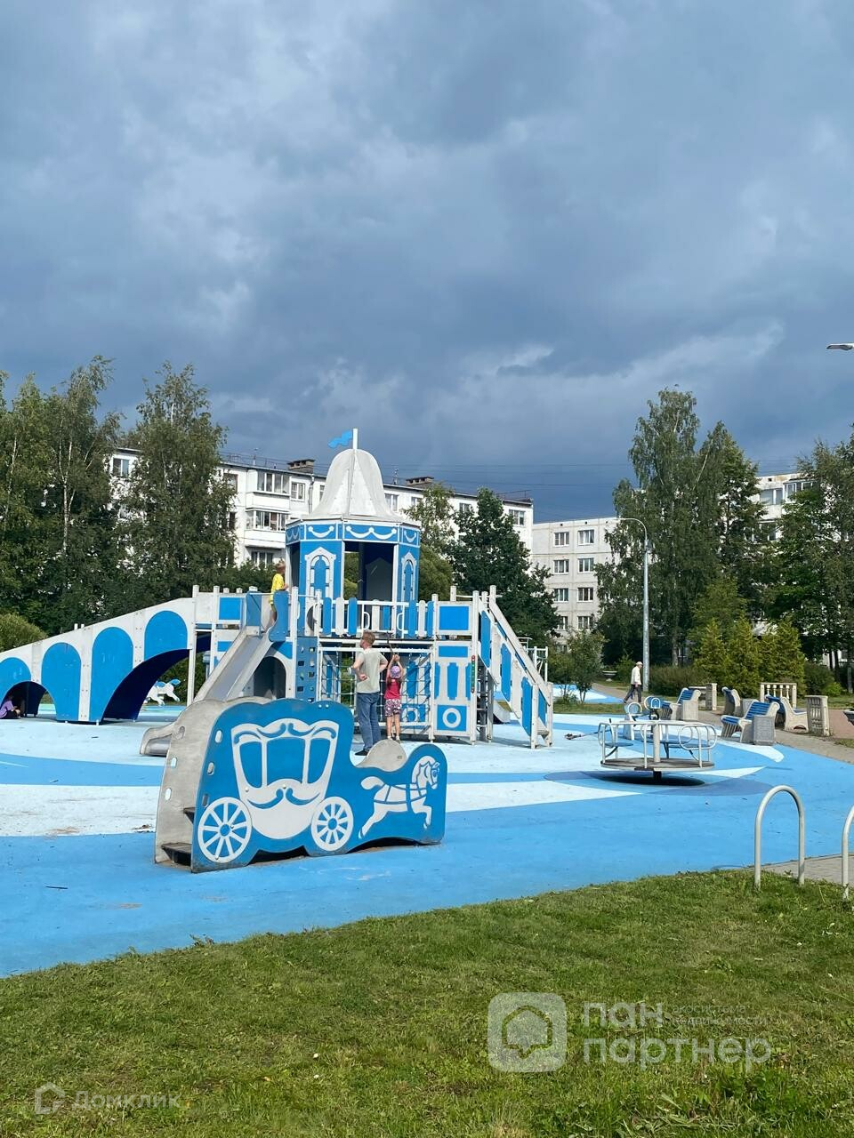 Во дворе две детских площадки.