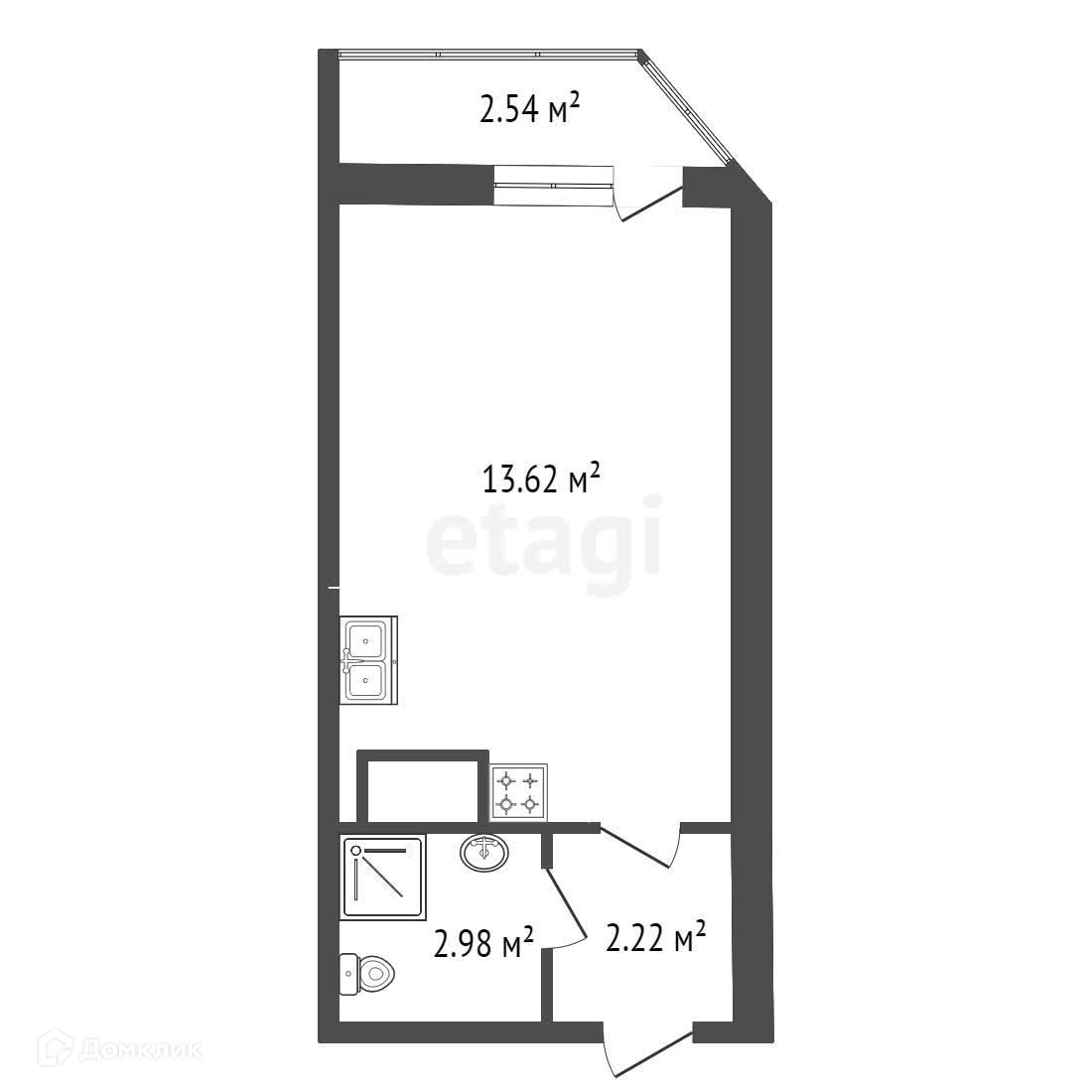 Общая площадь 26.4 м2