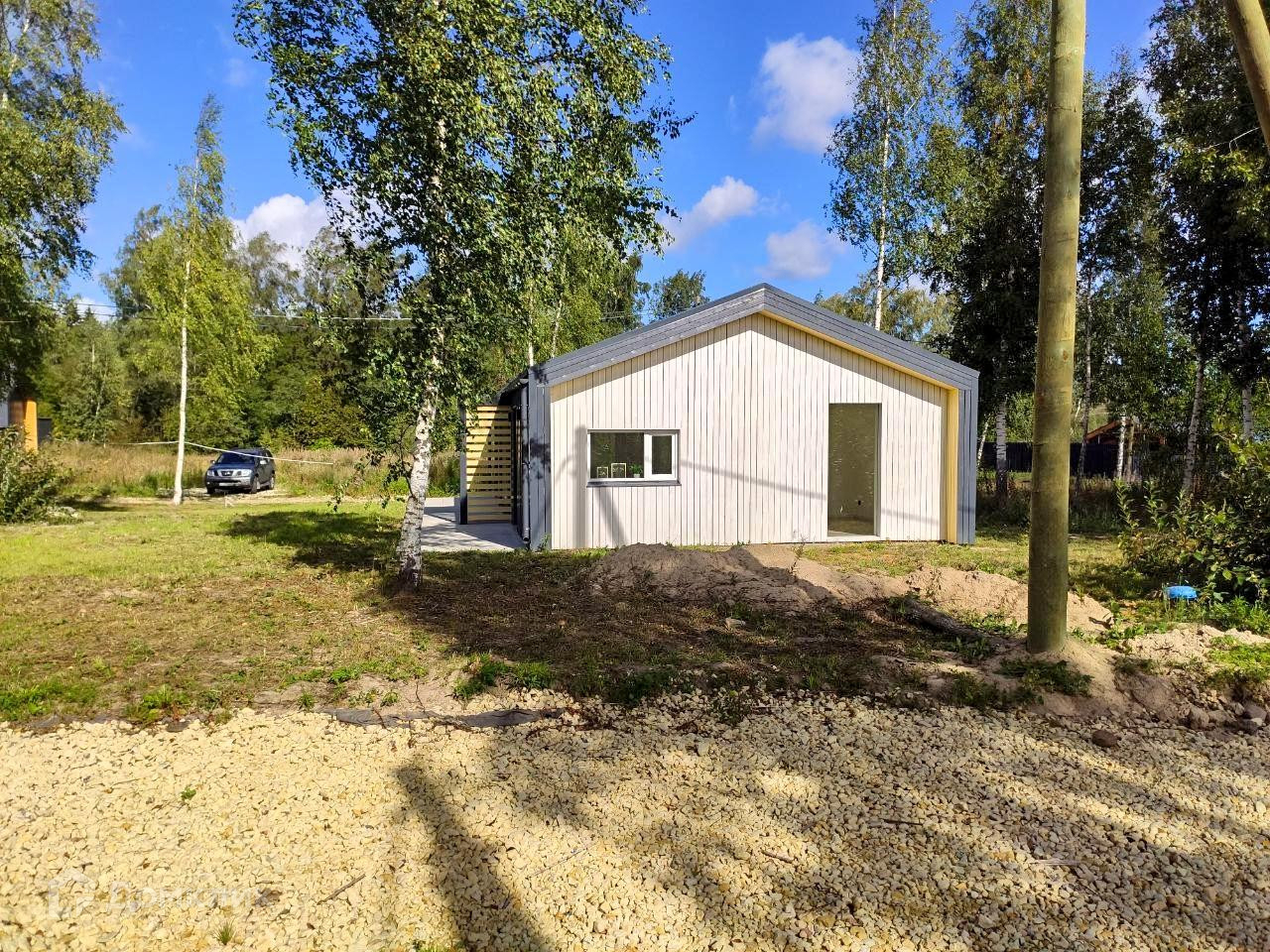 - Парковочное место отсыпано щебнем.