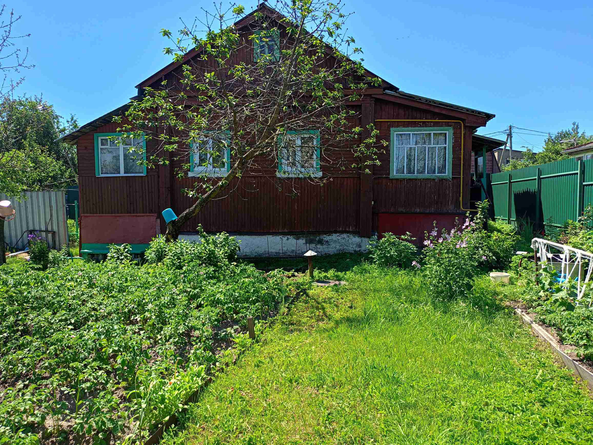 В черте города продается жилой дом 60 кв.м.с централизованными коммуникациями и 10 соток земли. Дом разделен на 2 семьи с двумя входами на разные стороны улицы и своими участками земли. Собственники- дальние родственники, совместно проживают очень давно. Участки каждый свой огорожены, обработаны, с одной стороны сад-огород, летний душ. С другой газон и плодовые деревья, бытовка с комнатой и душем, беседка. Если убрать ограждения внутри получится большой участок правильной формы с выходами на 2 стороны. В доме все коммуникации централизованные, туалет- выгребная яма. Состояние жилое. Удобная локация: До ближайшей школы, детсада, магазина, поликлиники 10 минут пешком. Остановки по району, до жд станции Монино и до Москвы 5 минут пешком. В долевой собственности по наследству разных лет, более 5. Полная стоимость в договоре, ипотека обычная, маткап, сертификаты. Продается только целиком, по долям не продается. Торг только после просмотра.