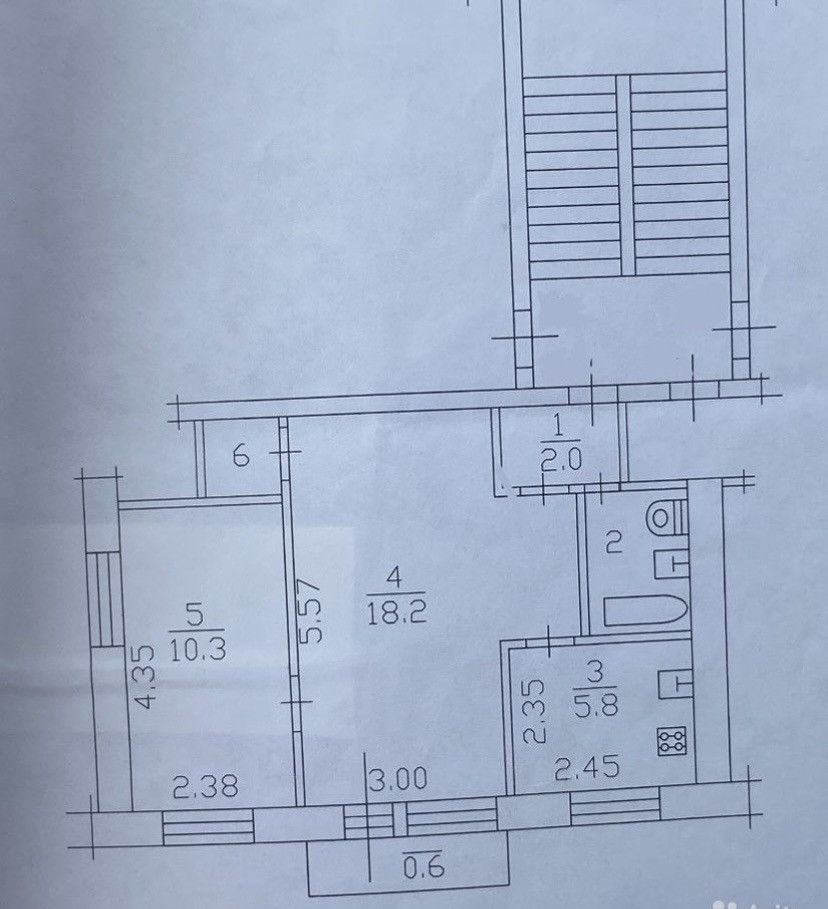 Общая площадь 40.4 м2