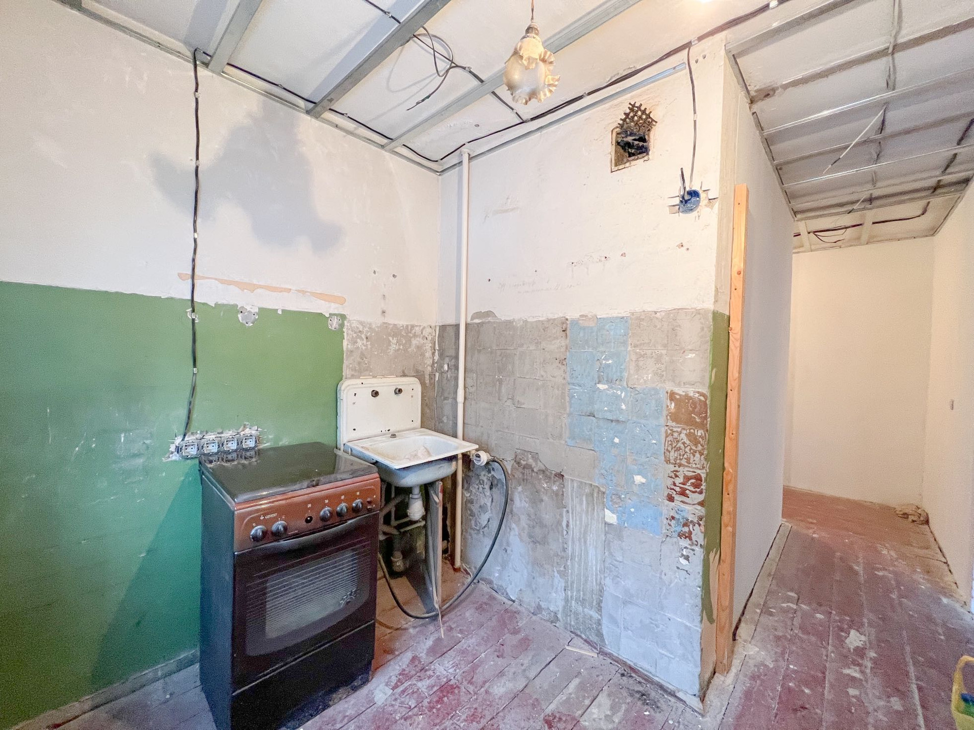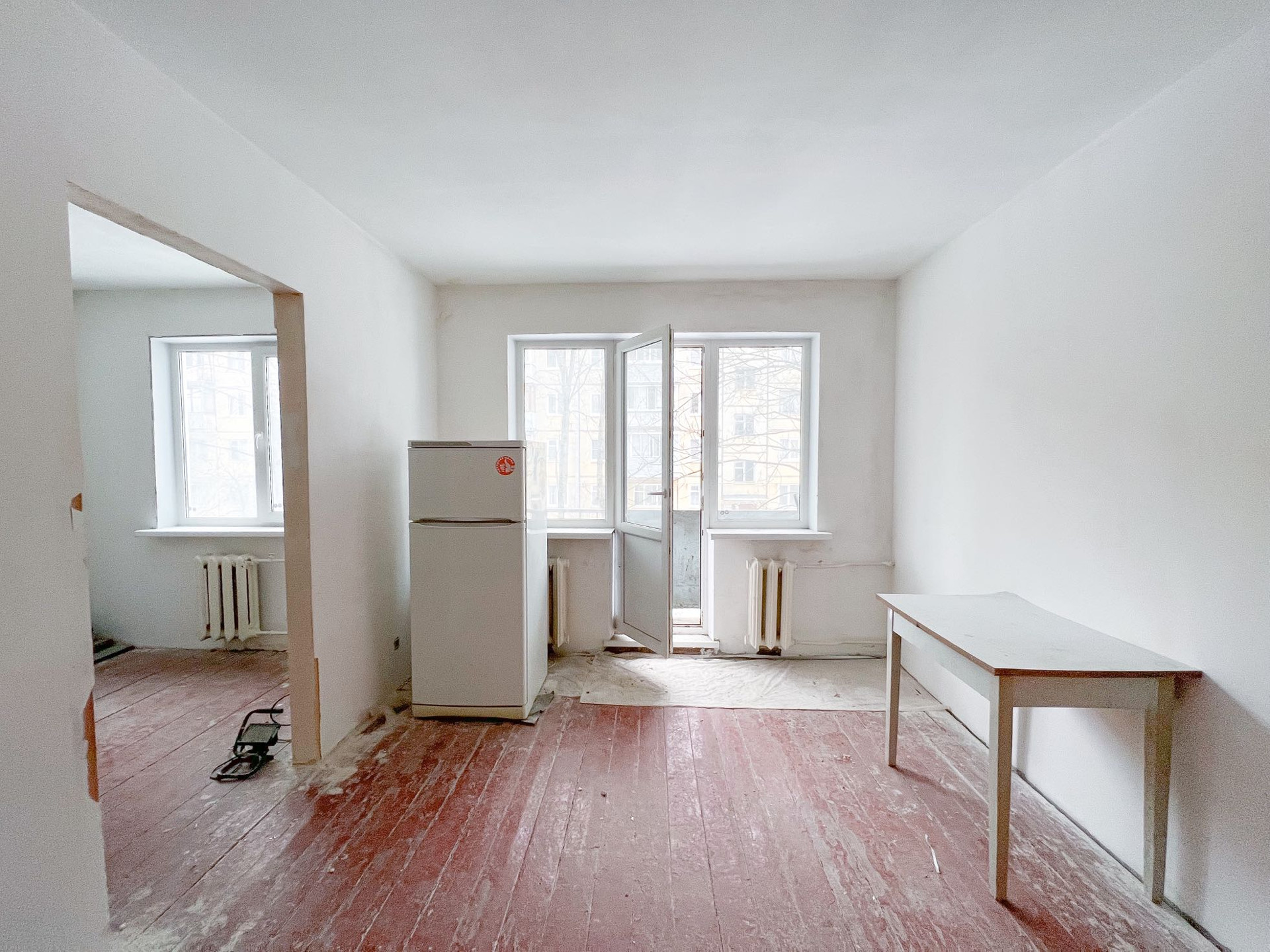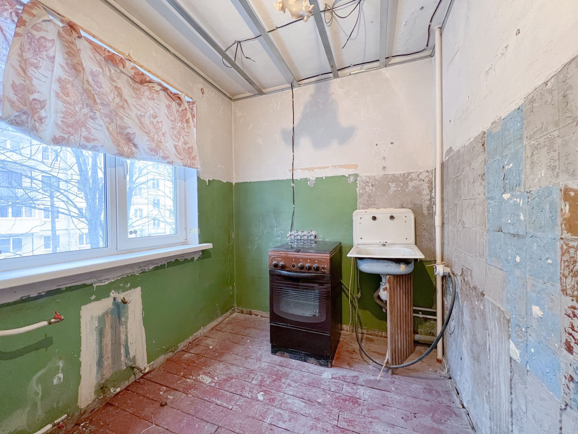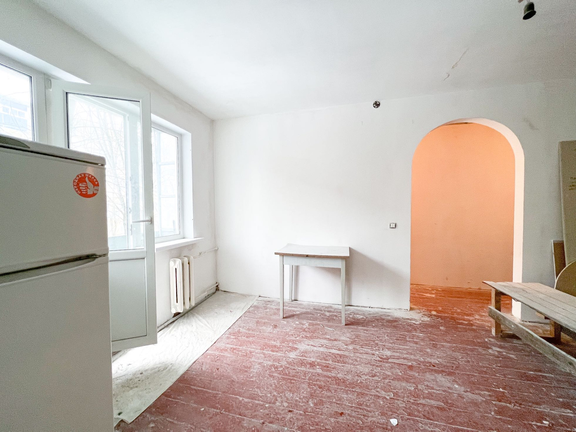 Квартира частично подготовлена к чистовому ремонту. Заменена электро проводка, выровнены стены и потолок, установлены новые окна (выходят на восточную сторону), смонтированы новые трубы канализации и воды, есть счетчики на газ и воду.