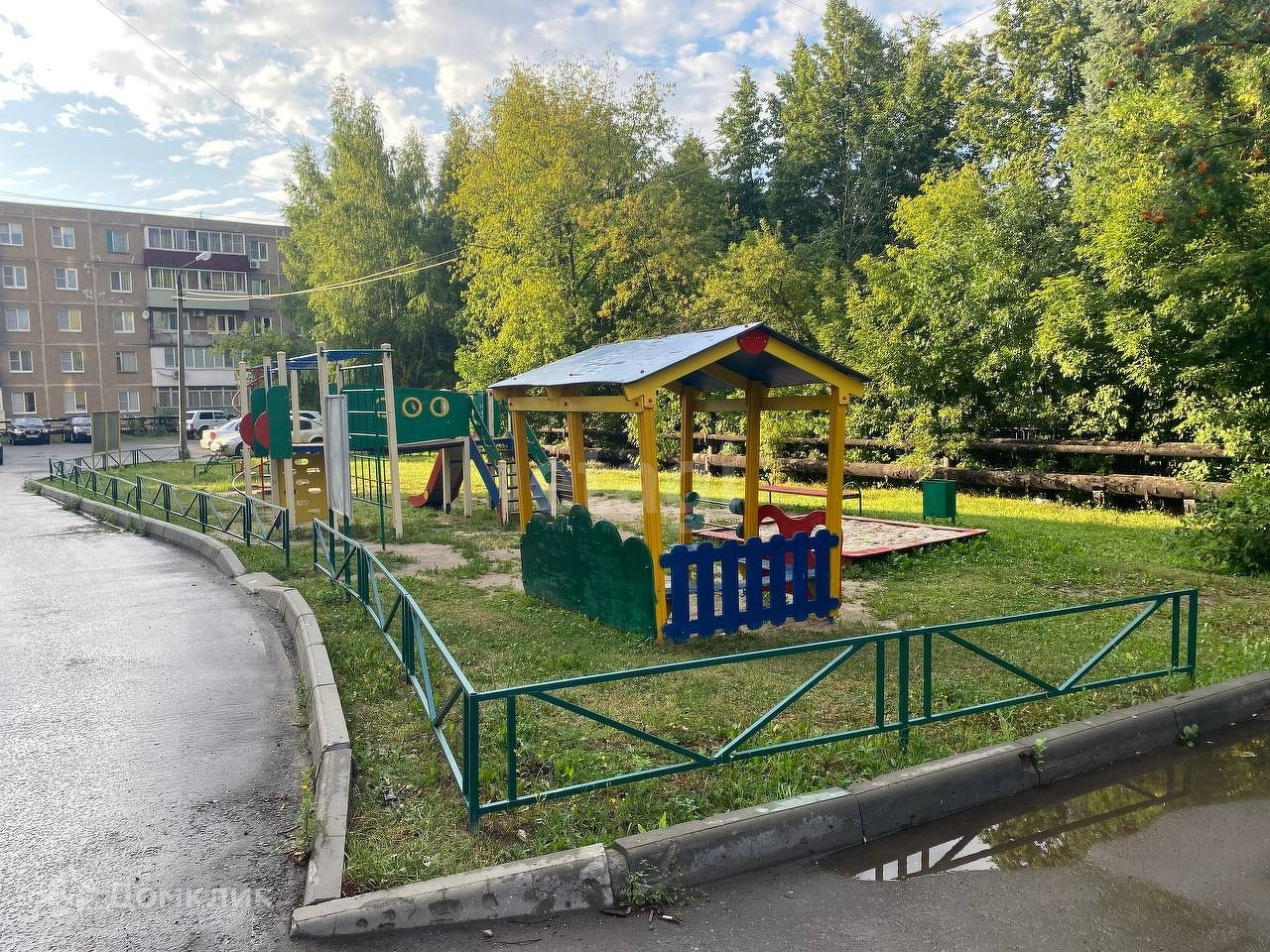 Во дворе дома есть детская площадка.