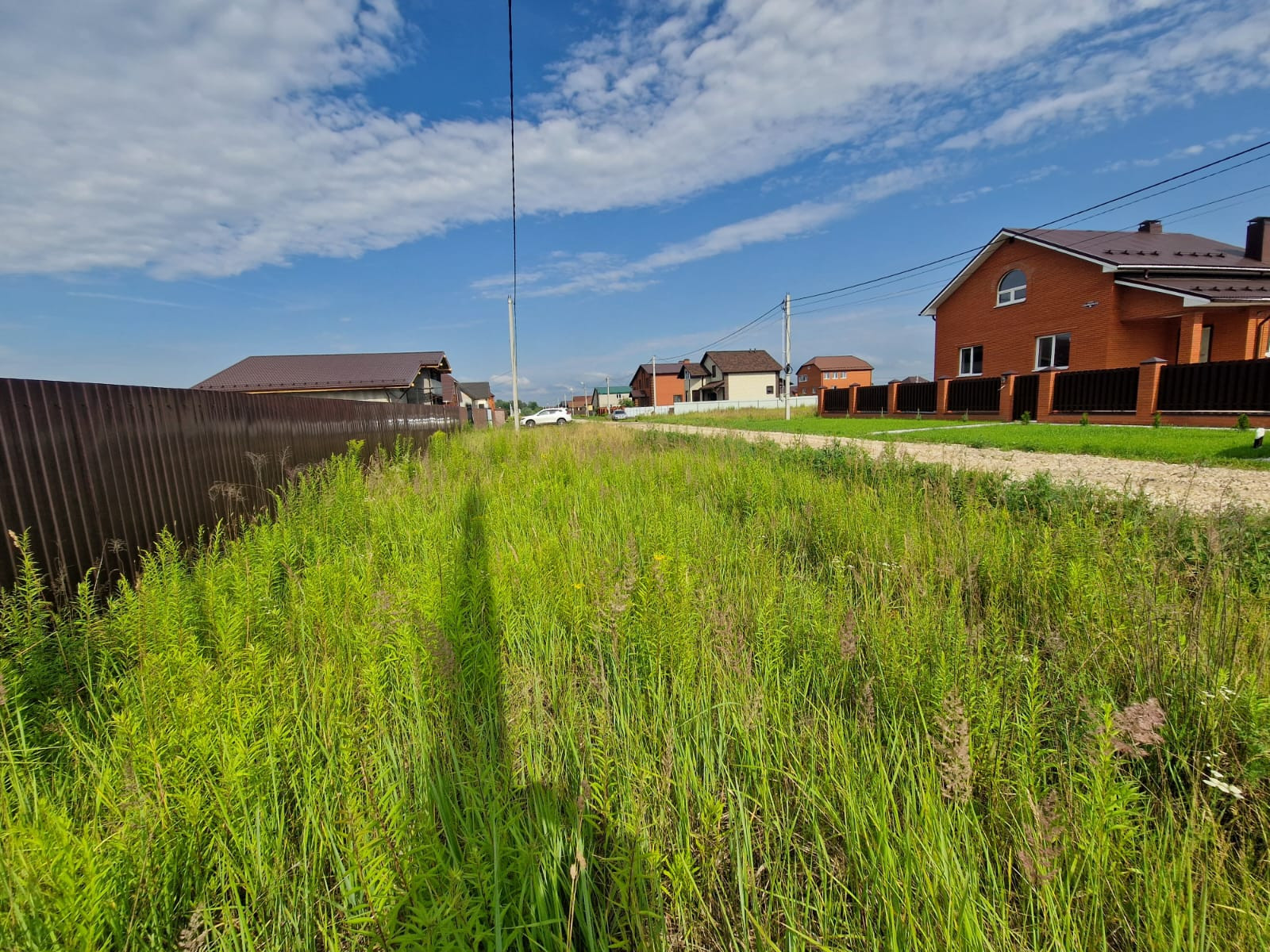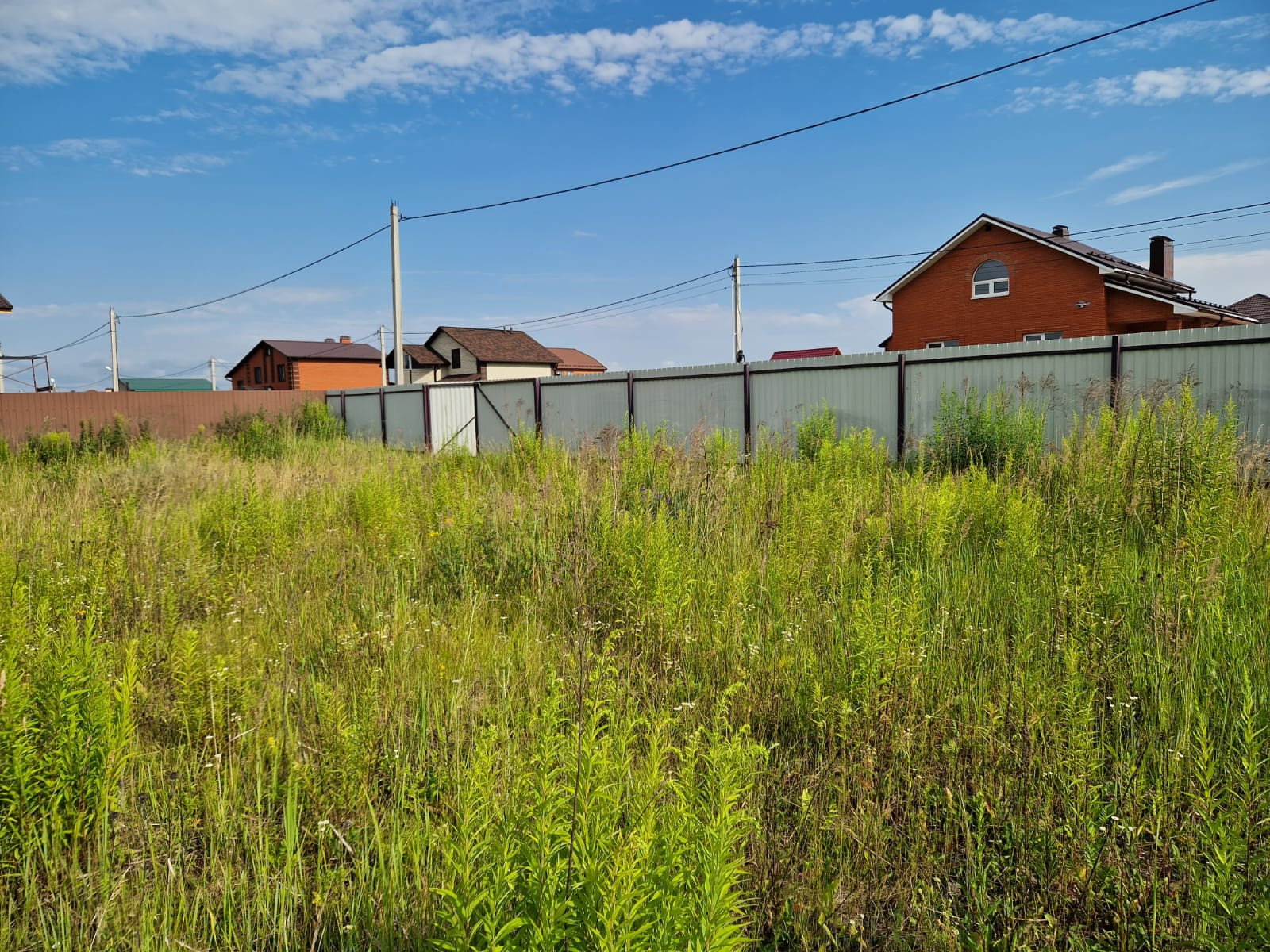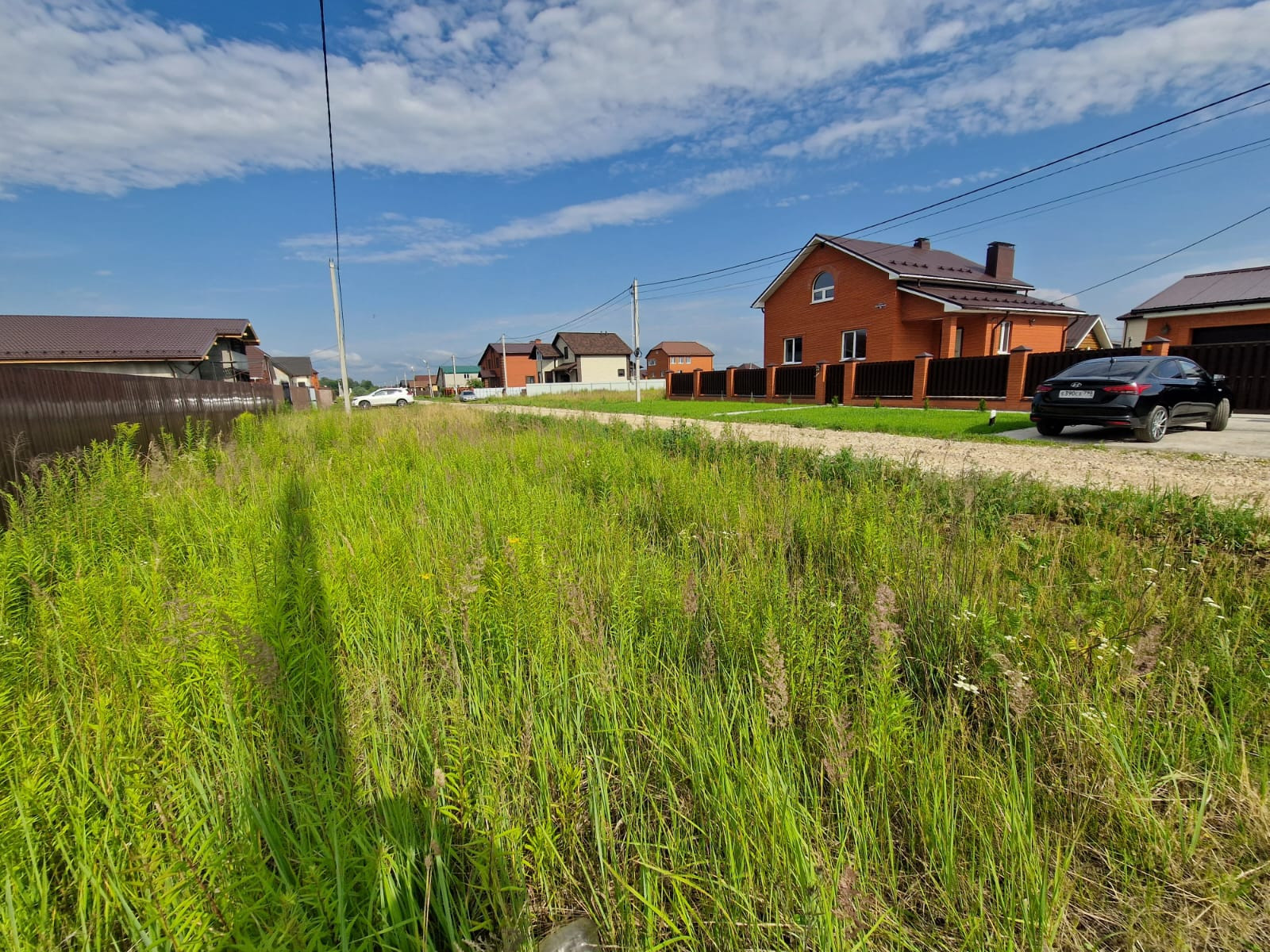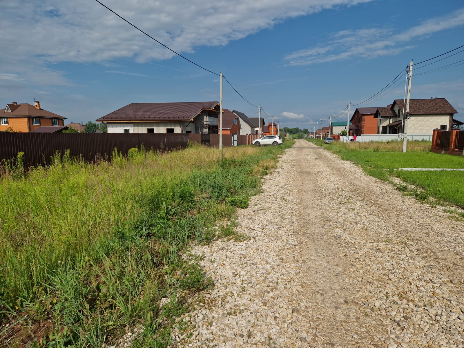 Огорожен забором со всех сторон, электричество и газ по границе, дорога отсыпана. Соседи построились и проживают постоянно.