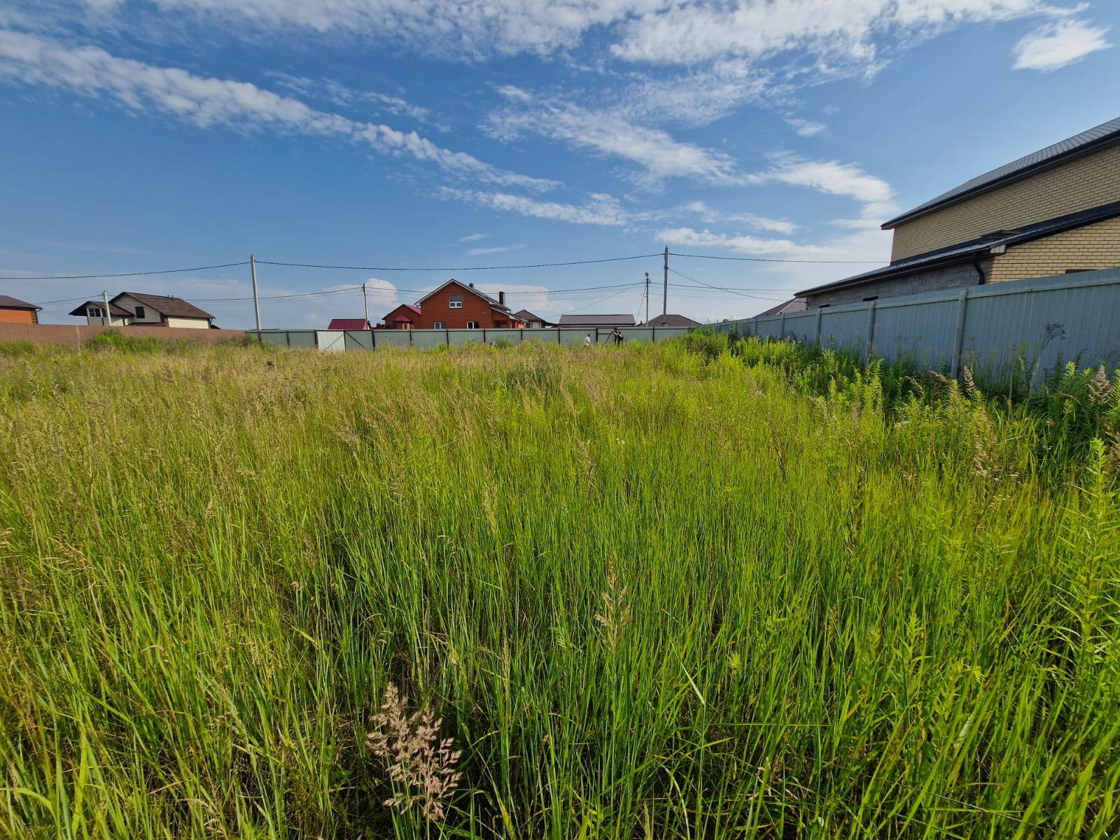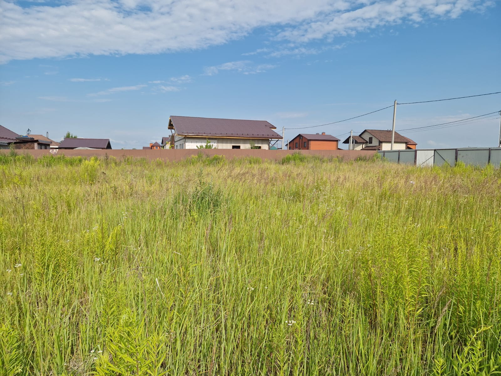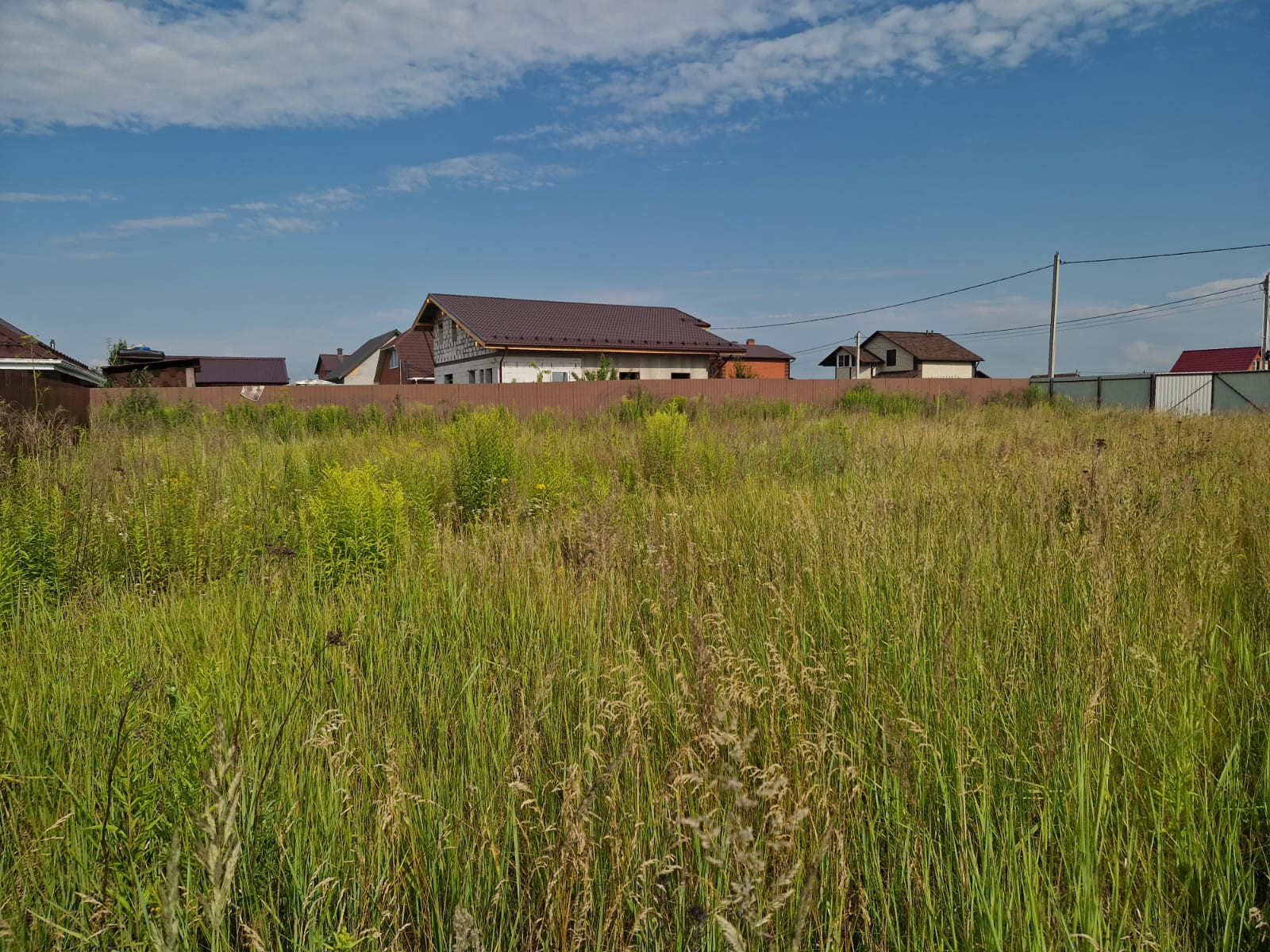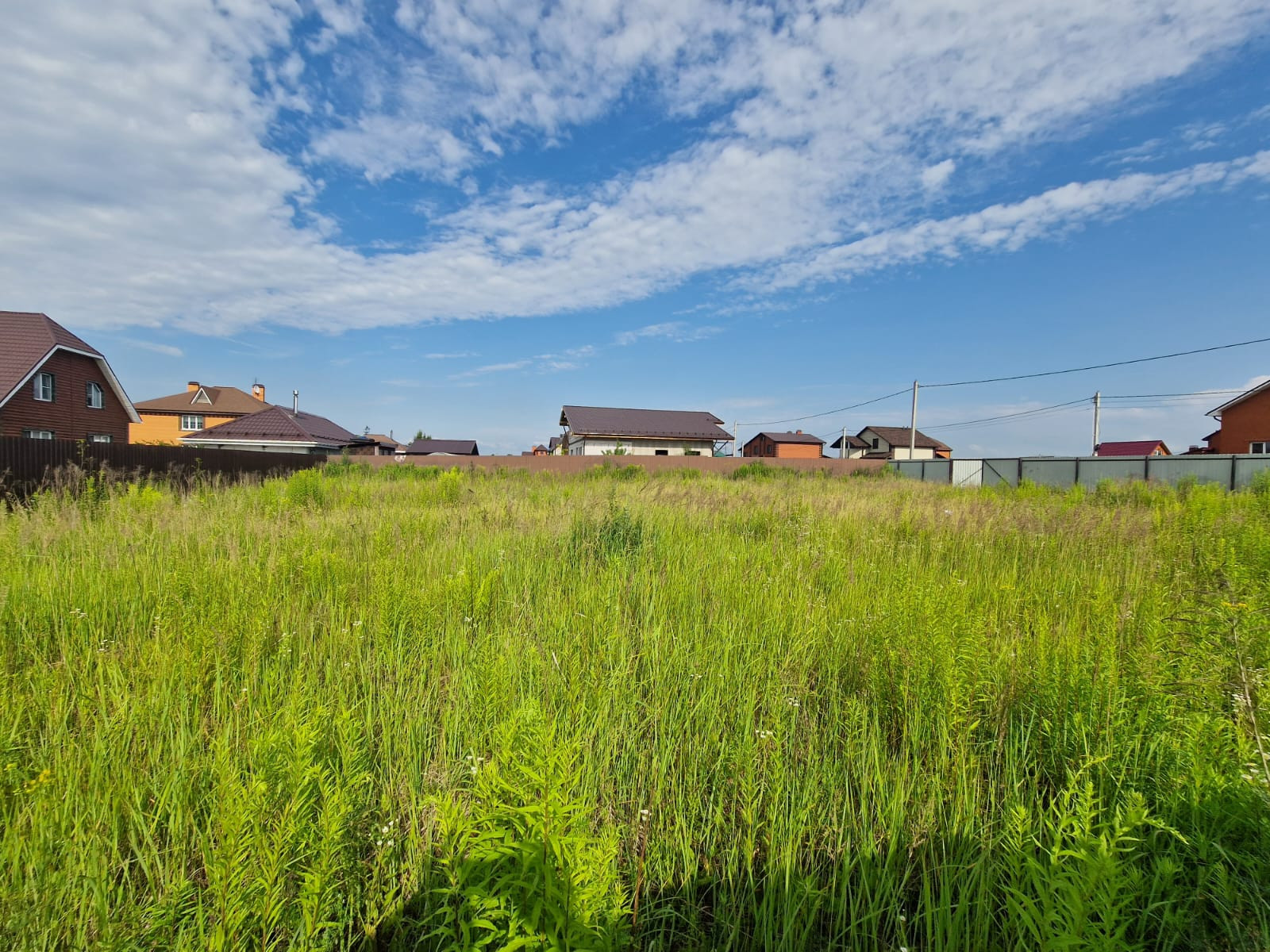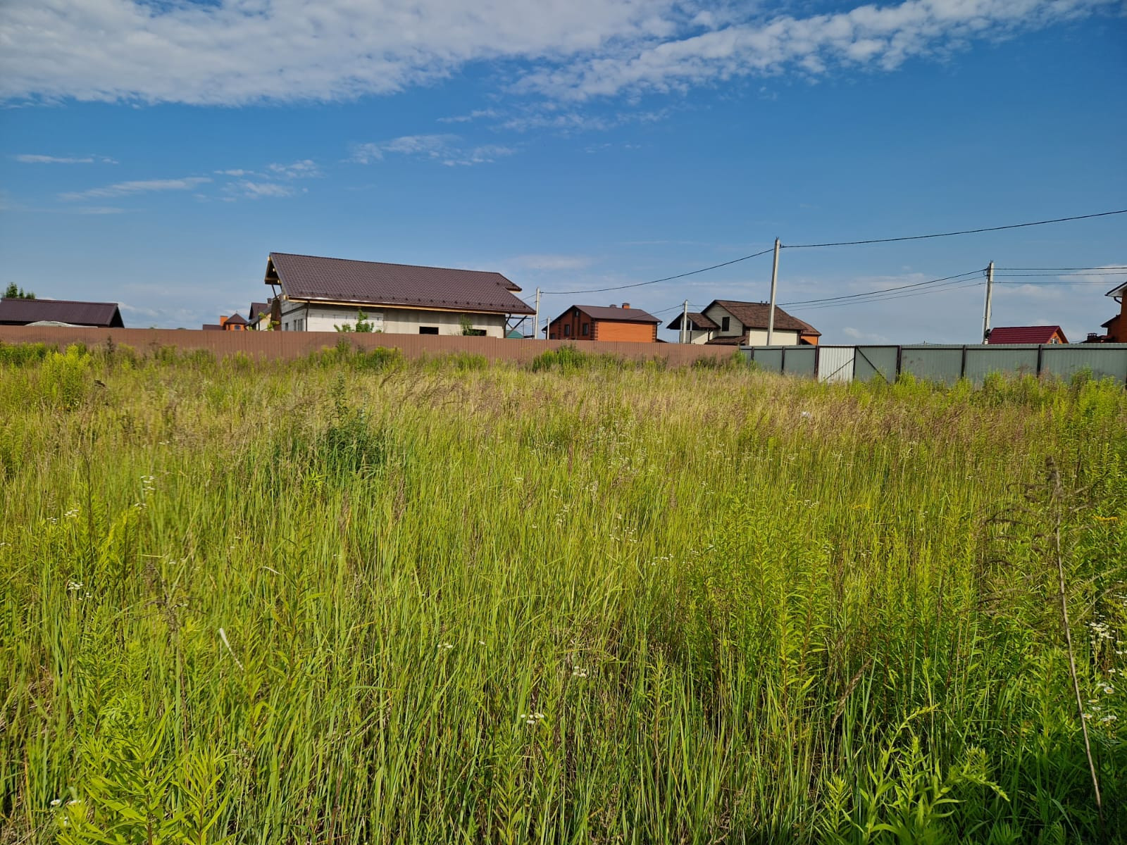Огорожен забором со всех сторон, электричество и газ по границе, дорога отсыпана. Соседи построились и проживают постоянно.