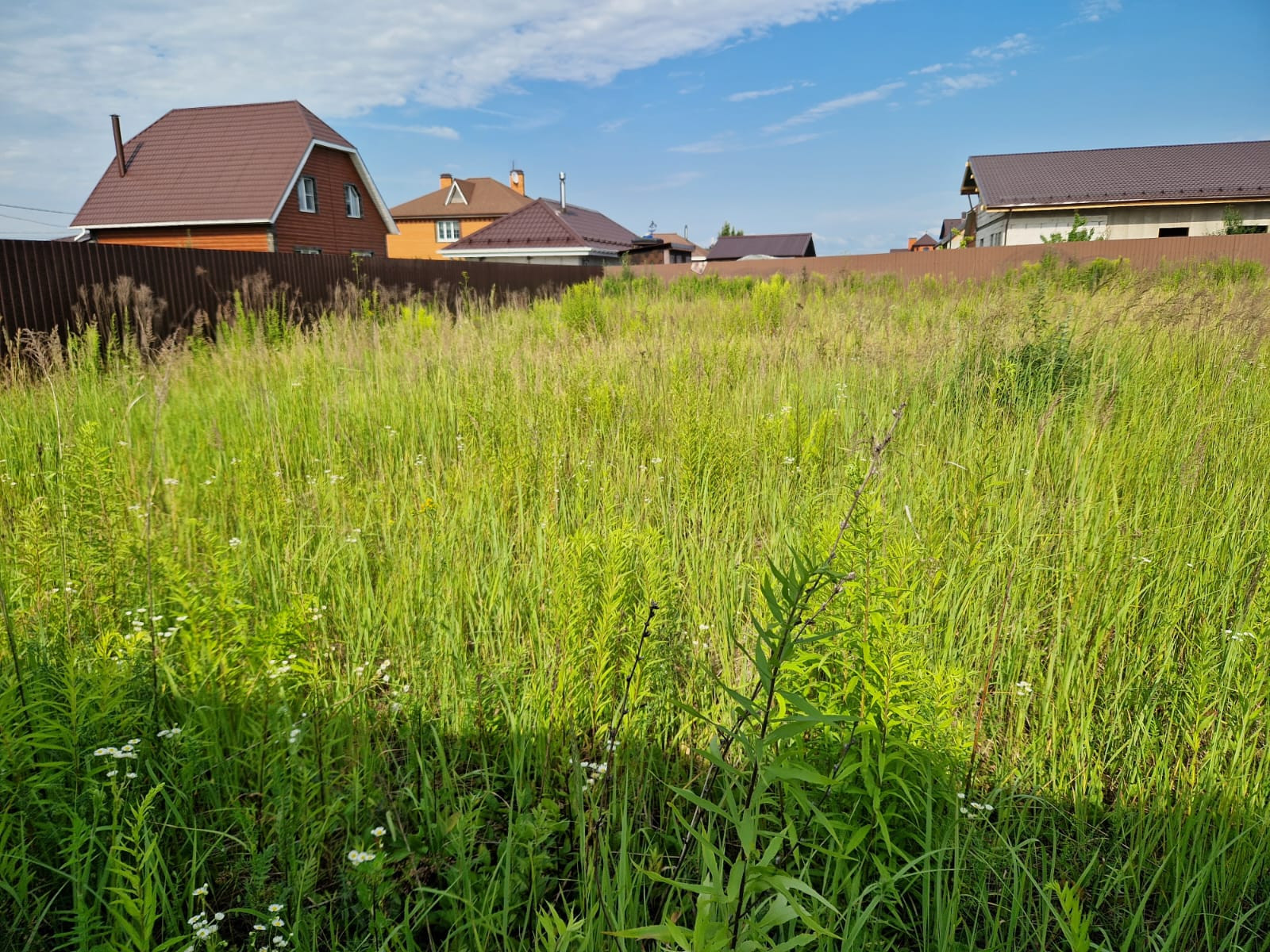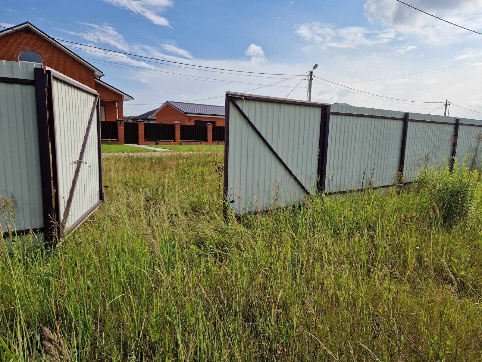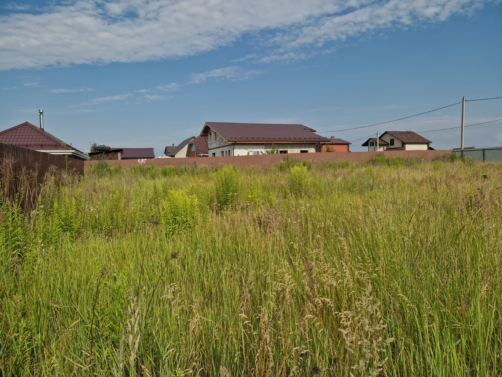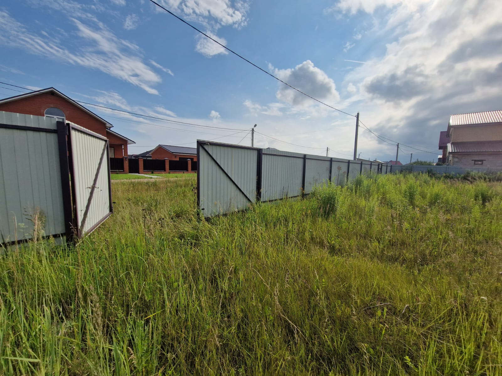 Огорожен забором со всех сторон, электричество и газ по границе, дорога отсыпана. Соседи построились и проживают постоянно.