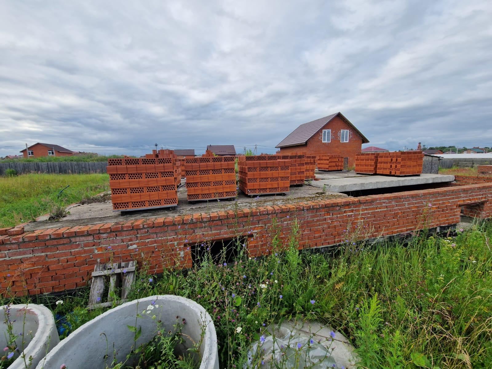 Продам земельный участок в городе, с фундаментом под строительство жилого дома 12х12, перекрыт плитами. На участке построена кирпичная баня 7х7, имеется бытовка.