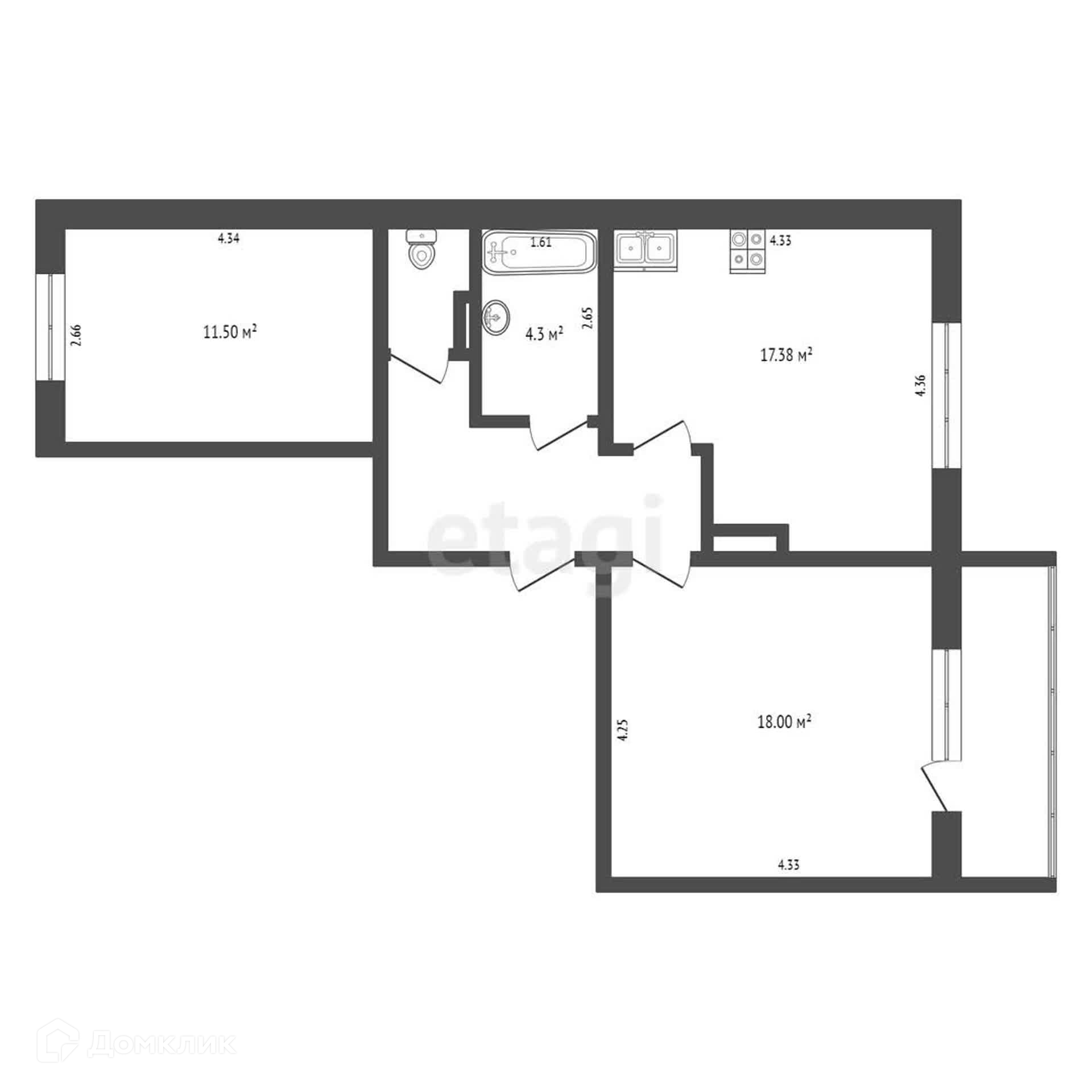 Общая площадь 61 м2