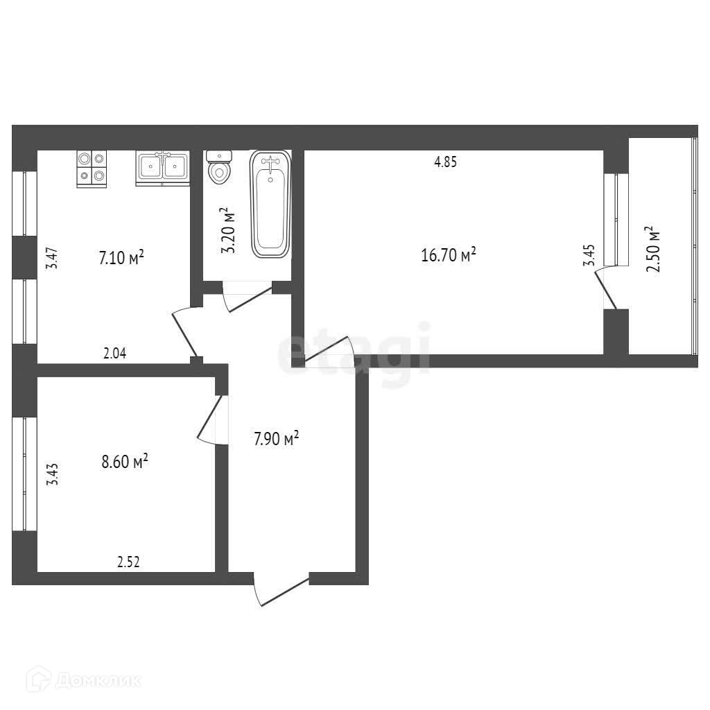 Общая площадь 40.7 м2