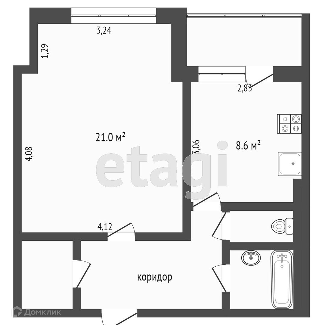 Балкон, лоджия 1 балкон