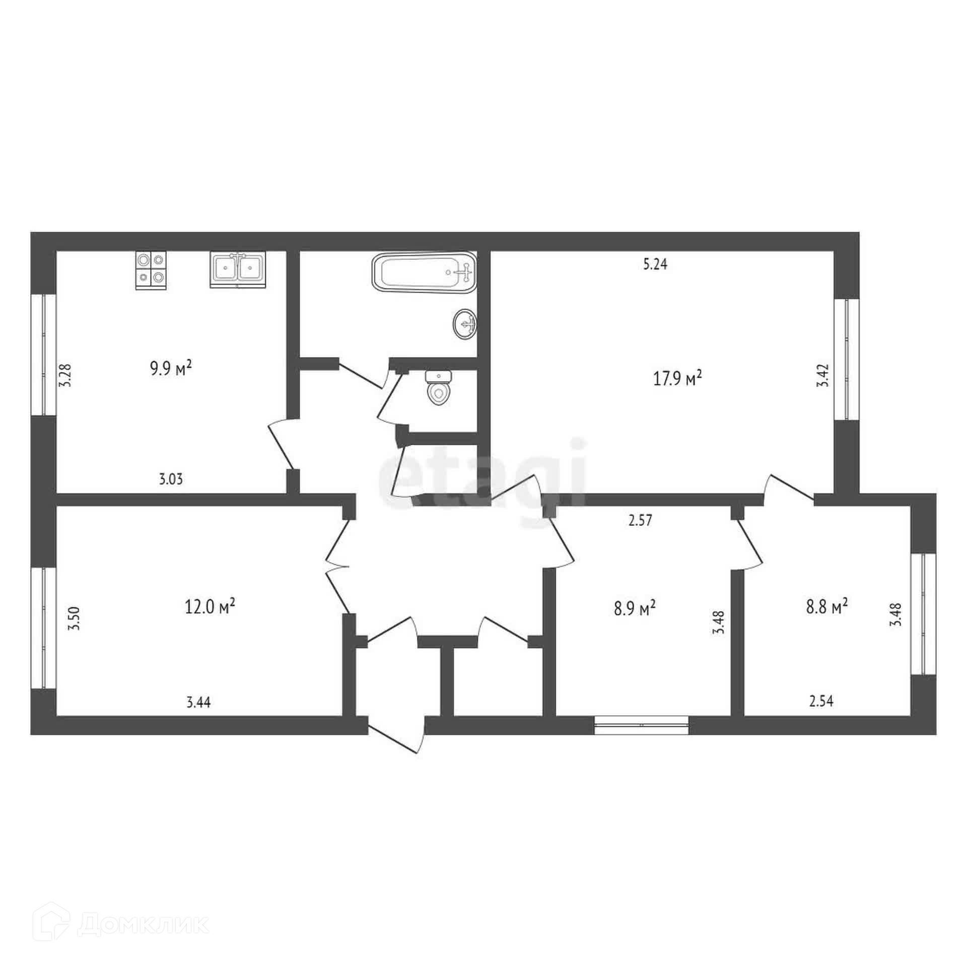 Общая площадь 74.9 м2