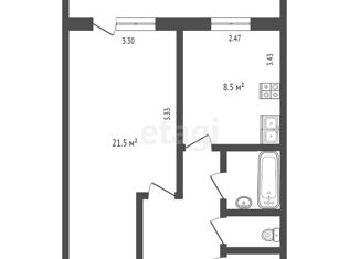 2-комнатная квартира на продажу, 45.8 м2, Набережная улица, 22