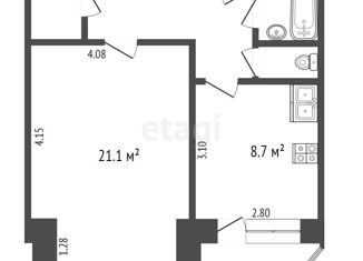 Общая площадь: 43.1 м2