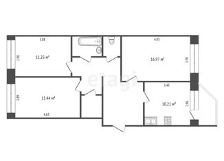 Общая площадь: 57.9 м2