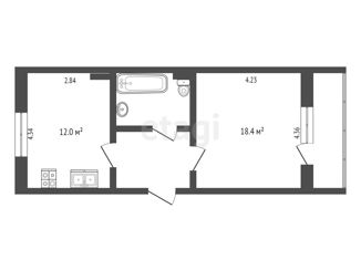 Общая площадь: 42.3 м2