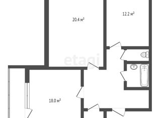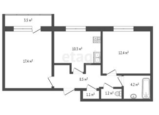 Общая площадь: 52.2 м2