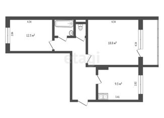 Общая площадь: 42.7 м2