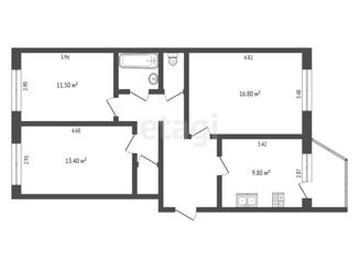 Общая площадь: 56.6 м2