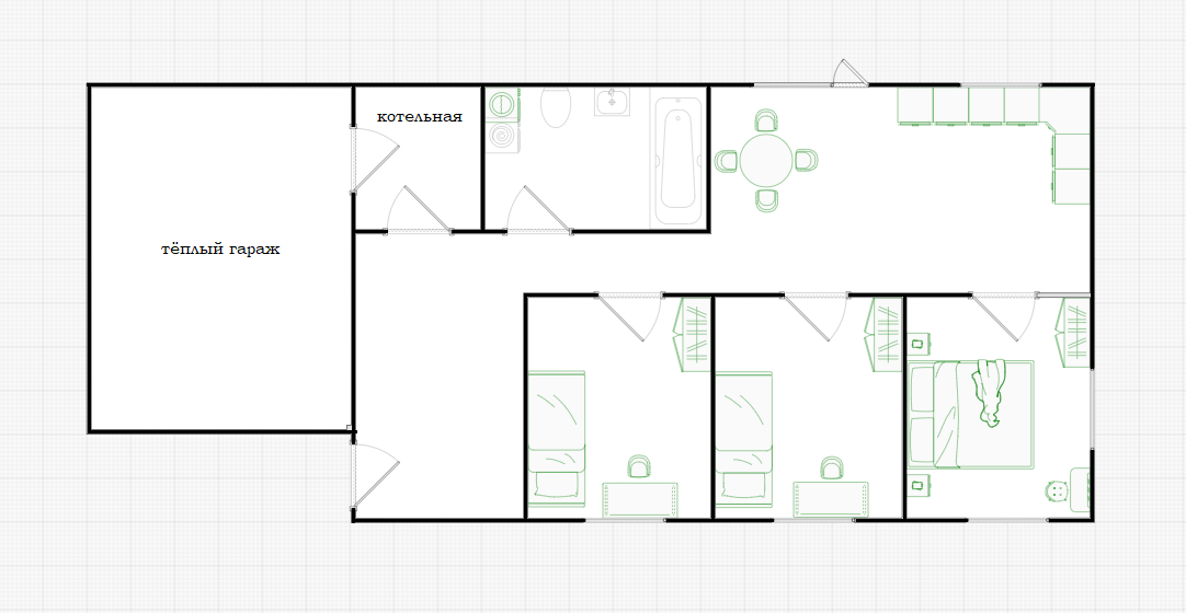 Удобная планировка для большой семьи: три отдельных спальни, большая кухня-гостиная с выходом на террасу, просторная прихожая и совмещённый санузел.