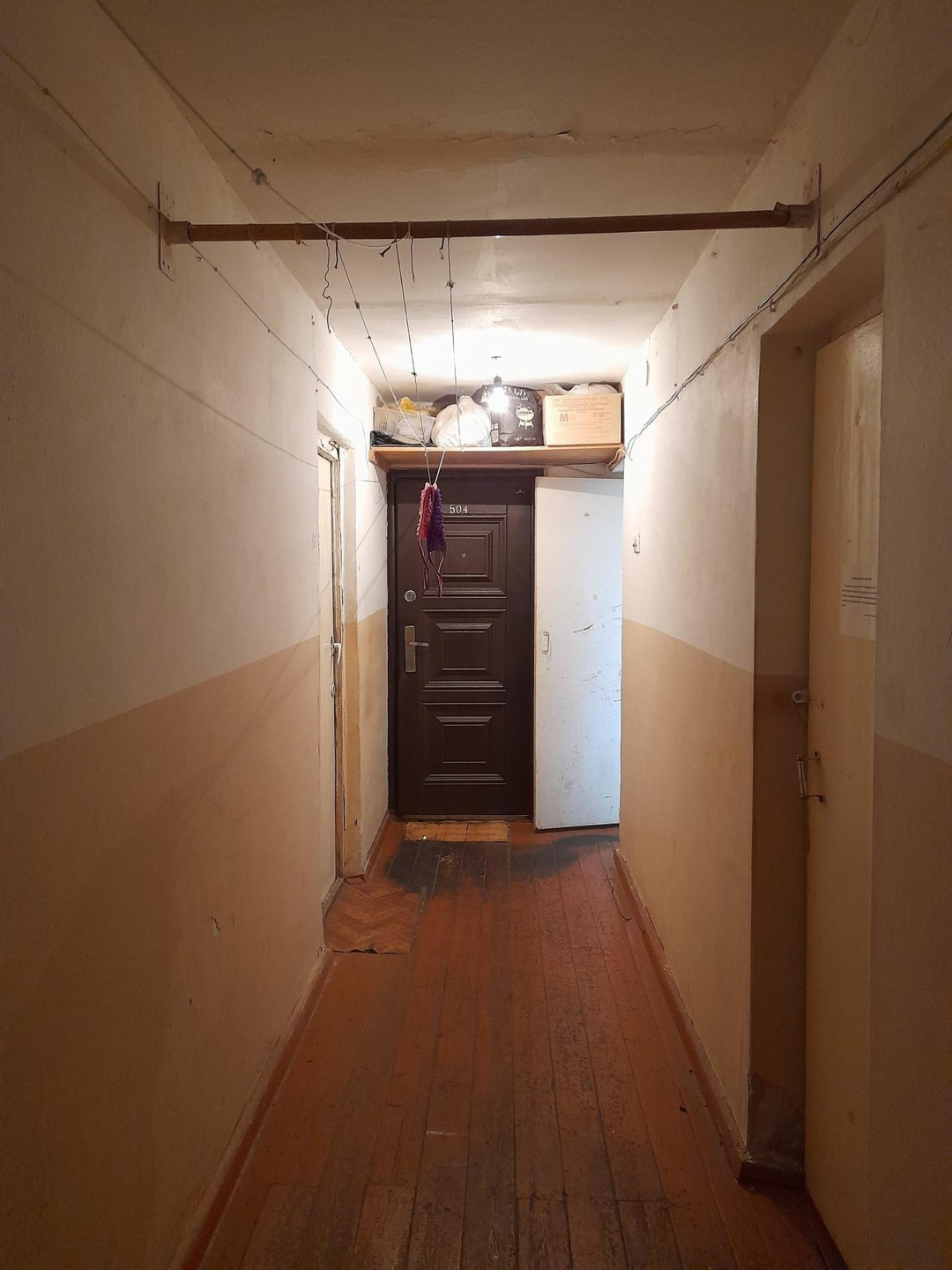 Коридор на 4 комнаты, живут только в 2-х комнатах, соседи спокойные.