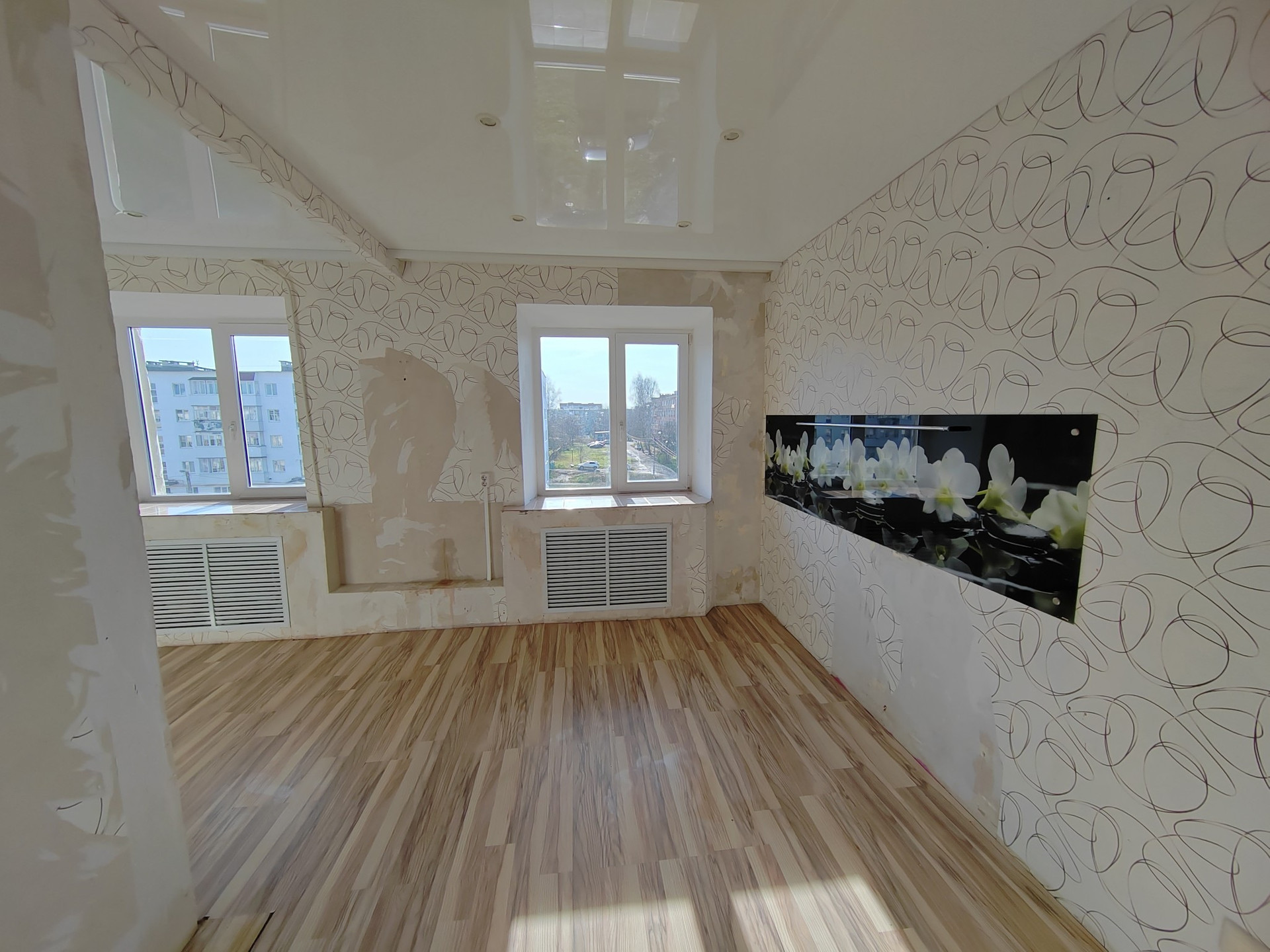 Продаётся четырёхкомнатная квартира. Квартира тёплая, частично с ремонтом: потолки натяжные, на полу ламинат, электрика вся новая, везде стеклопакеты, балкон застеклён.