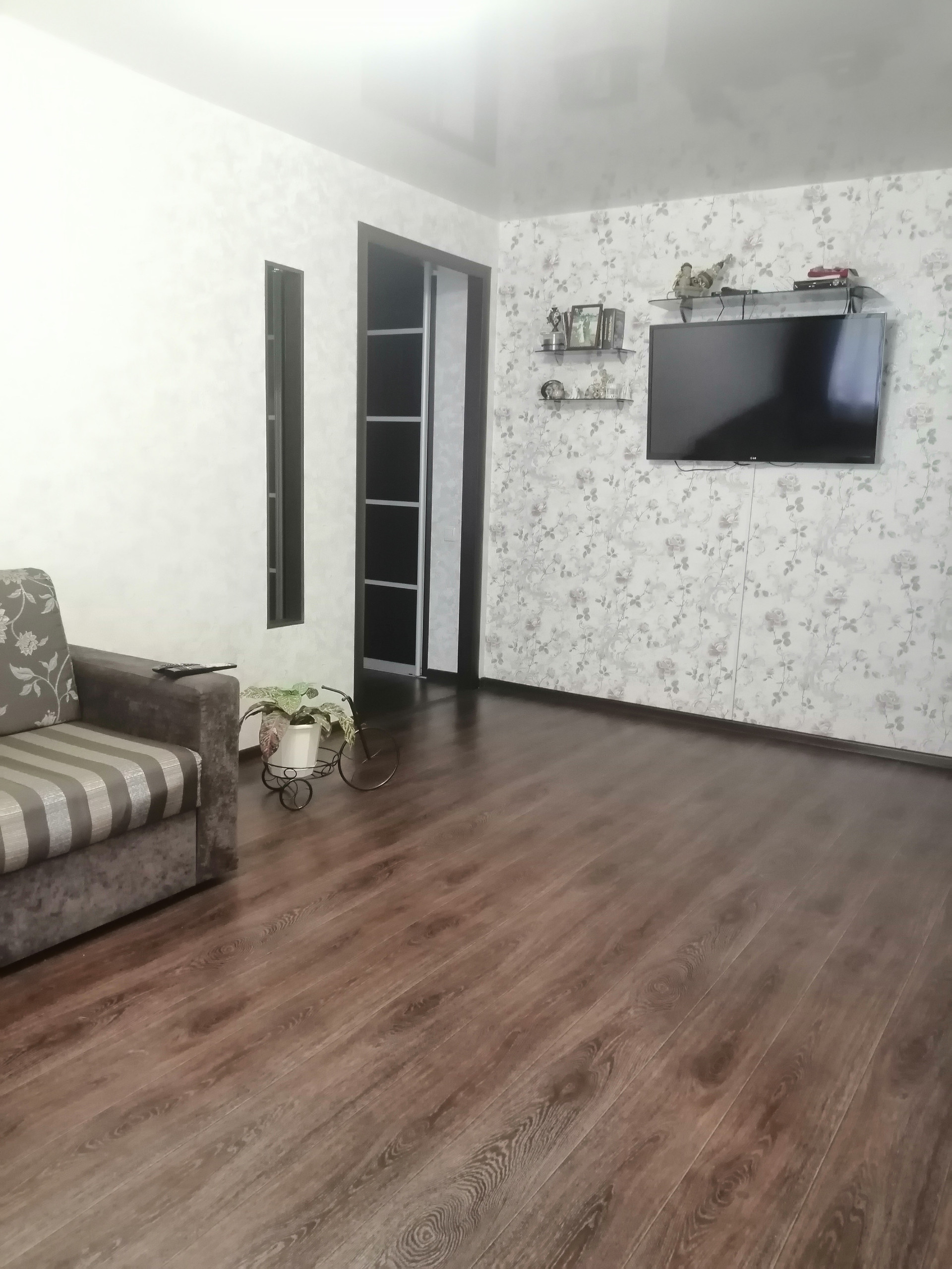 Остаётся вся встроенная мебель (кухня полностью, большой шкаф-гардероб, шкаф и прихожая в коридоре), водонагреватель.